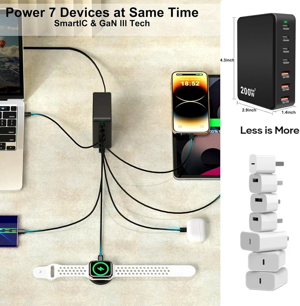VenmoBrand new, USB C Charger Block 200W 7 Port Fast Charging Station, PD 45W Laptop Charger Brick Adapter Compatible with MacBook Pro/Air,DELL,Steam Deck,iPhone 16/15/14,Galaxy S23/22 (Black)