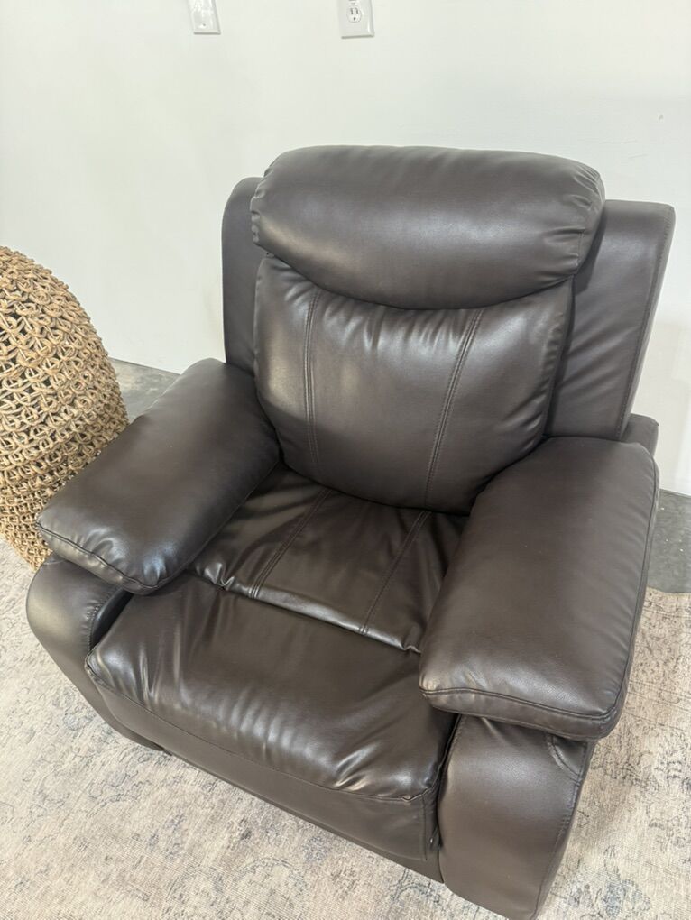 Follow Us On Instagram: SaltLakeSits Retail Price: $600 Your Price: $149 ️ Soft, dark leather chair with plush cushioning and wide padded arms. The chair has a smooth seat and supportive backrest, offering a comfortable lounging experience. 🫧 Expertly Cleaned 🫧 Dimensions: 36” x 29”