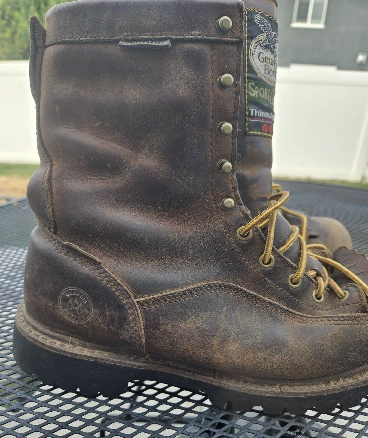 Insulated Georgia Logger Boots. Nine inch uppers. Sport and Trail 400 Thinsulate. regular toe (no steel, etc ). Water resistant Goretex lining. Theese are great Boots only slightly worn but no longer needed. Size 10 M. Be ready for winter. Asking $100.00. In Syracuse, you pick up.
