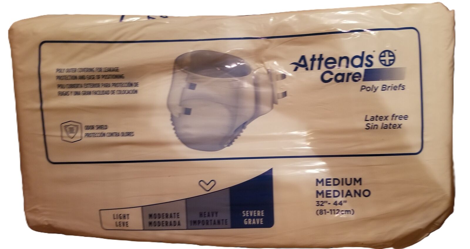 Attends Care Poly Briefs Adult Diapers Size Medium 2 packs of 24 each - 4 dozen total. Plastic backed diaper briefs for worry free protection. 2 packages each as shown in pics. Cash only. Can't always answer phone so please text.