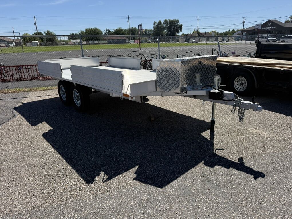 ZelleTandem axle 8x14 aluminum trailer like new condition very little use. Side mounted ramps, alloy wheels and box for storage can Dee 801-668-6266
