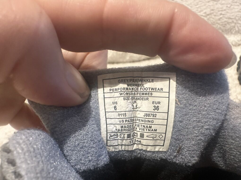 Merrell women size 6 gray/periwinkle, mesh and leather waterproof mid hiking boots. These are in good condition, see photos for details. I take cash or Venmo, but cash is preferred. Text is best. 801-201-4446. Check out my other ads for additional sizes and styles.