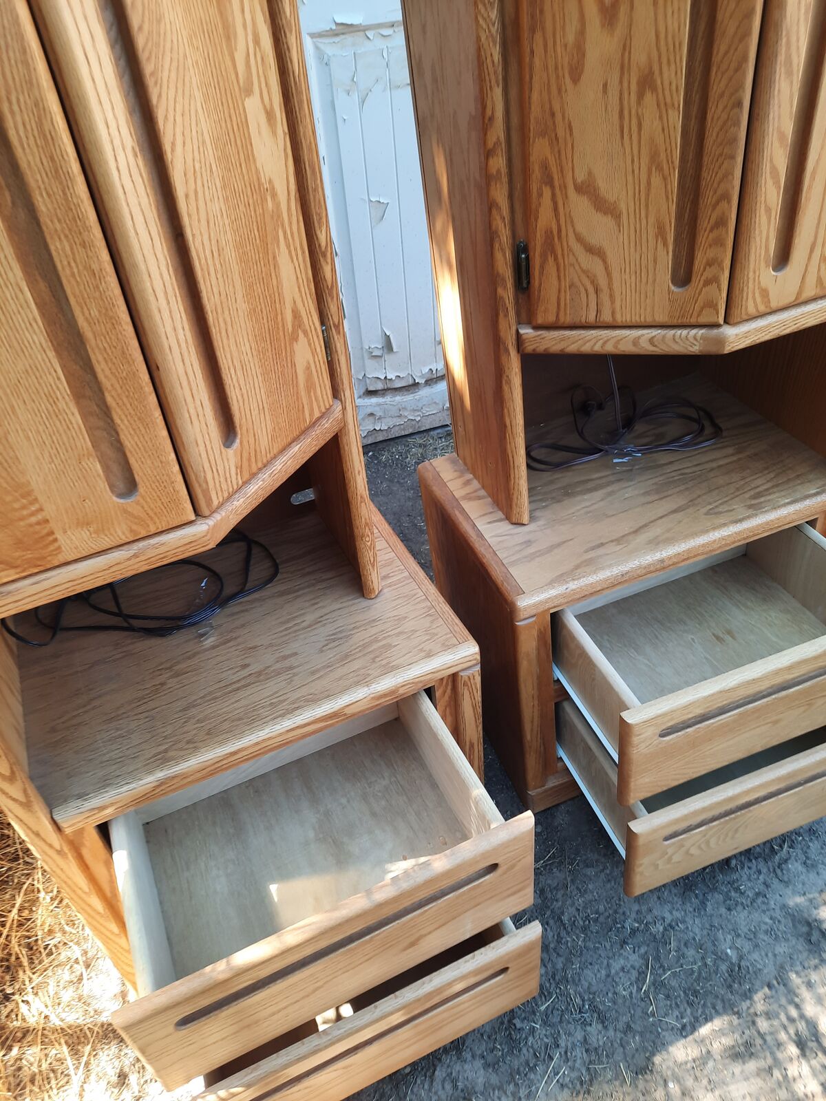 Venmotwo tall matching nightstands with light size around 17 in wide front to back 21 in long side to side 60 in tall located in hurricane currant day appointment only if I'm available to show today after work not available during day time work hrs or when other things keep me from being available no shipping pick up only no holds beyond a short drive time out view times in early evenings during the week no later than 7 pm (Monday thru Thursday) weekend times very (Friday thru Sunday) payment ways at time of purchase cash in hand or venmo in person completed an verified in the app check out all my listings