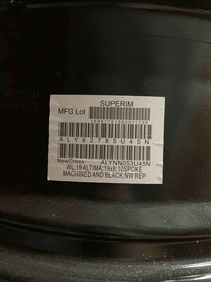 Venmo19x8 5x114.3 Nissan Altima Wheels Pair 45 offset ALYNN053U45N brand new unmounted ONLY 2