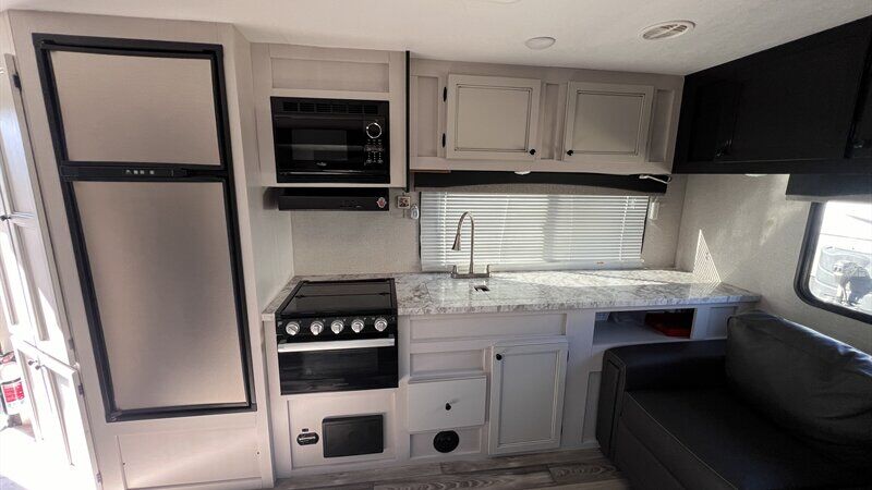 Enjoy a comfortable camping trip in this travel trailer! The rear tri-fold sofa has countertop space for you to set your bowl of popcorn on while you watch a movie on the LED HDTV at the entertainment center. Prepare your best meals with the three burner cooktop and 17" oven then enjoy them at the booth dinette slide which can also transform into an extra sleeping space. The dual entry bathroom has a radius shower to freshen up in each morning and leads directly into the front private bedroom which has a queen bed with underbed drawers, wardrobes on either side of the bed, and a laundry chute to keep your dirty clothes out of the way! Highland Ridge RV Range Lite travel trailers maximize their interior space while staying lightweight thanks to the TuffShell fiberglass walls! The extra-deep slides with residential floors create more walking around space, and the vinyl furniture, no floor heat registers, and residential vinyl flooring throughout makes them kid and pet friendly. A few construction features you will appreciate include a fully-walkable roof, a thermal seal which means the underbelly is enclosed, heated, and insulated, and a fully insulated roof with a PVC roofing membrane. Plus, there is an exterior grill hookup quick connect port, self-adjusting electric brakes to help you safely arrive, and an oversized pass-through storage area with motion lighting. STOP BY PREMIER RV BROKERS AND SEE IT TODAY !! 2705 S 60 E ST GEORGE CALL OR TEXT WADE 435-229-3484 DAN 435-862-7589 OFFICE 435-673-5388