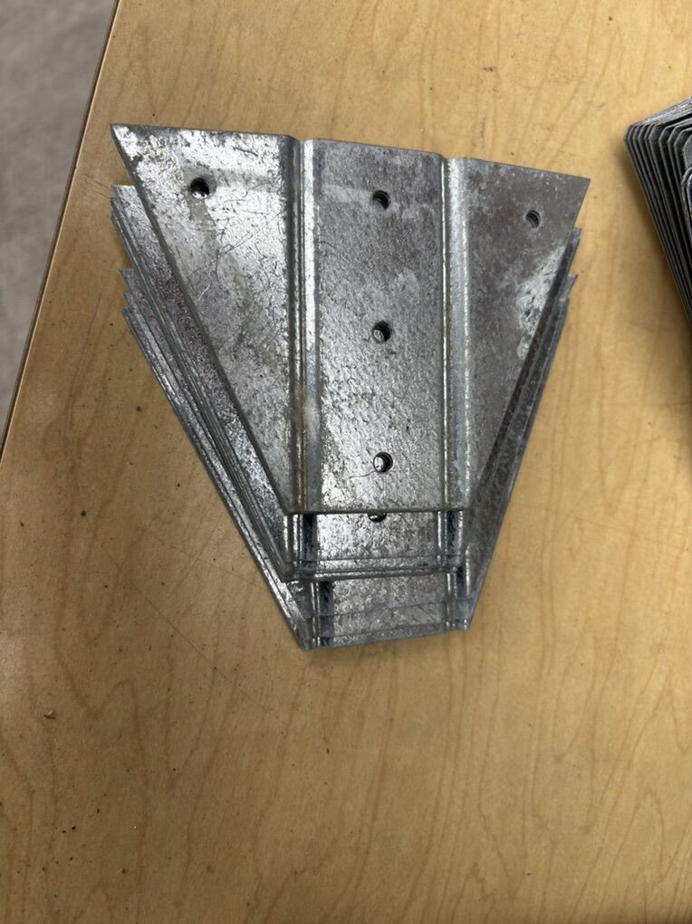 VenmoFraming Brackets For Shed, Dog House, Chicken Coop, or other structure. Includes 17 stud brackets and 53 angle brackets (gable roof brackets). See pictures of box.