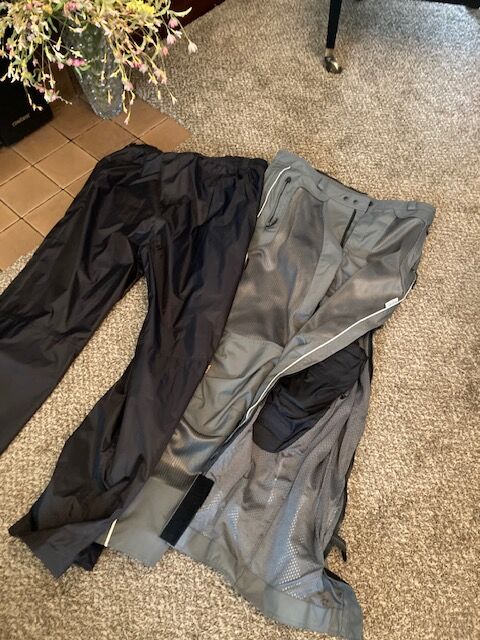 Durable Cordora. 40 in waist but adjustable. Zipper legs. Very good condition. Includes inner dry lining