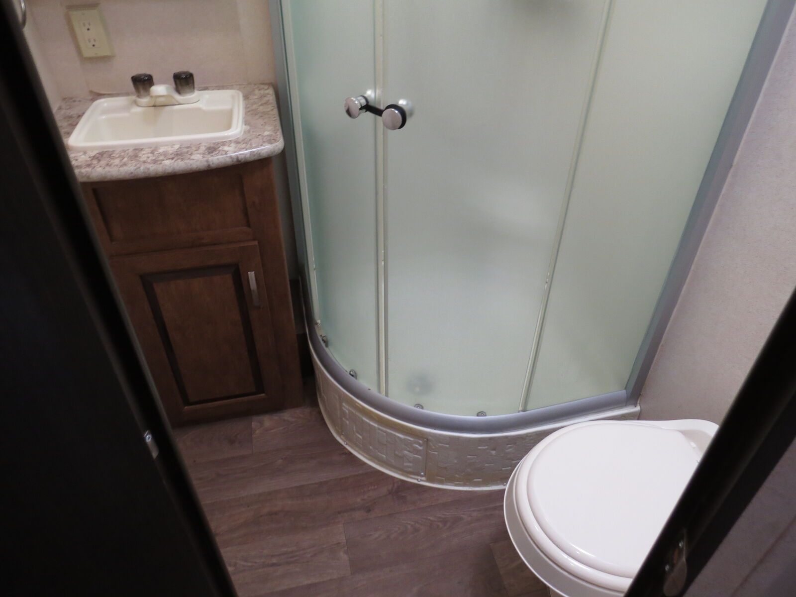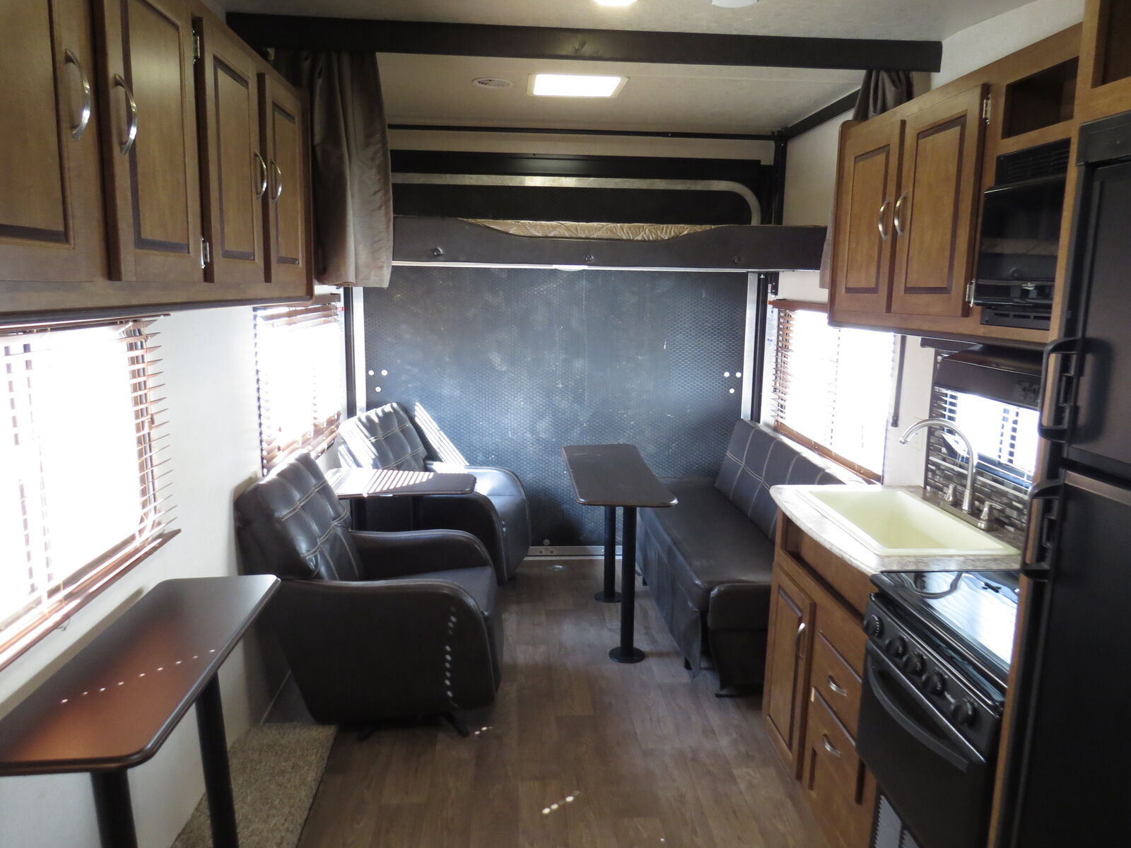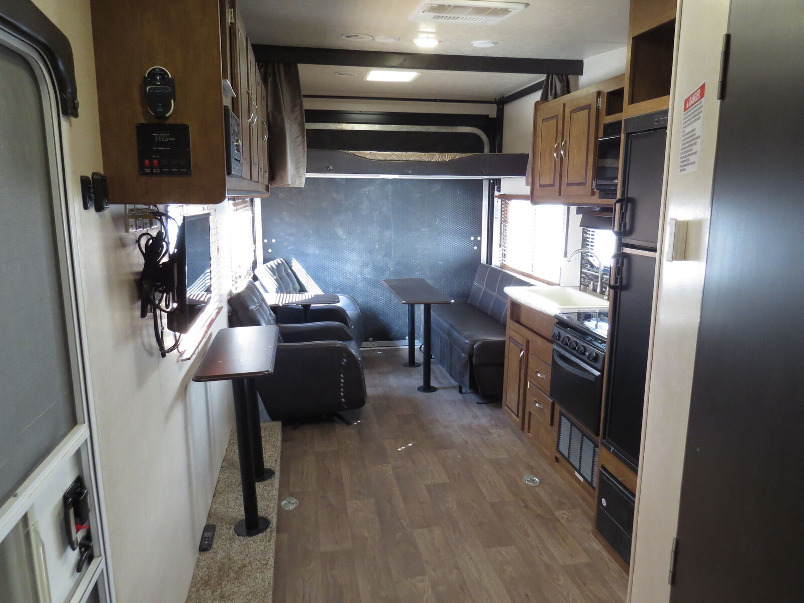 14' 2" Garage Space!, Walk around Queen bed, Electric rear Bed, Coouch Makes down to bed, (2) Captain Chairs, Big bathroom, Kitchen, Electric patio awning, A/C unit and Heat.