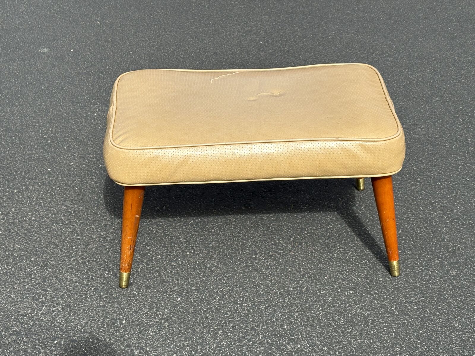 VenmoVintage Mid Century Modern ottoman footstool. Great wooden legs it would be super easy to recover it with New fabric or upholstery. Good bones
