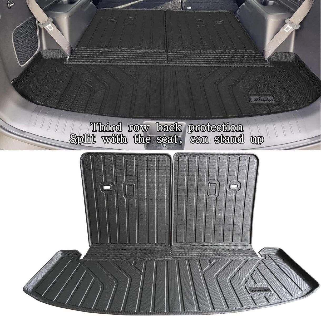 Custom Fit for ALL-NEW 2024-2025 Hyundai Santa FE Large Trunk mat It can be folded, flat when the third row is down and folded when the third row is standing up. The AltraVos floor mats is high-precision laser measured. SAFE AND COMFORTABLE MATERIALS The accessory pad for Hyundai Santa FE 2024-2025 is made of TPE, free of latex and PVC, 100% recyclable, and odorless. AltraVos mat is both soft and durable. More importantly, they can withstand extreme weather conditions, so you don't have to worry about cracking, curling, or mat damage. HIGH WALL DESIGN Beveled edges prevent wall bending. The high wall design can prevent any debris inside the lining and on the Large Trunk Mat. High grooves and ridges are designed for drainage. EASY TO CLEAN The garden hose gun can easily clean the floor mat for Hyundai Santa FE 2024-2025. There is also a damp cloth and some tap water available. Daily maintenance is really easy.