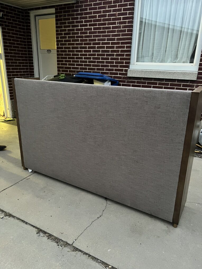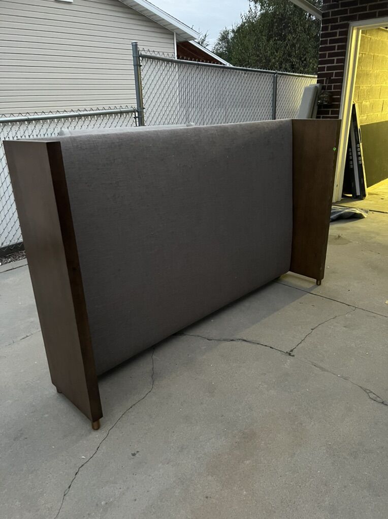 Selling a Bernhardt upholstered King size bed. Bernhardt is a LUXURY brand. Bed retailed for $3,600 new.\