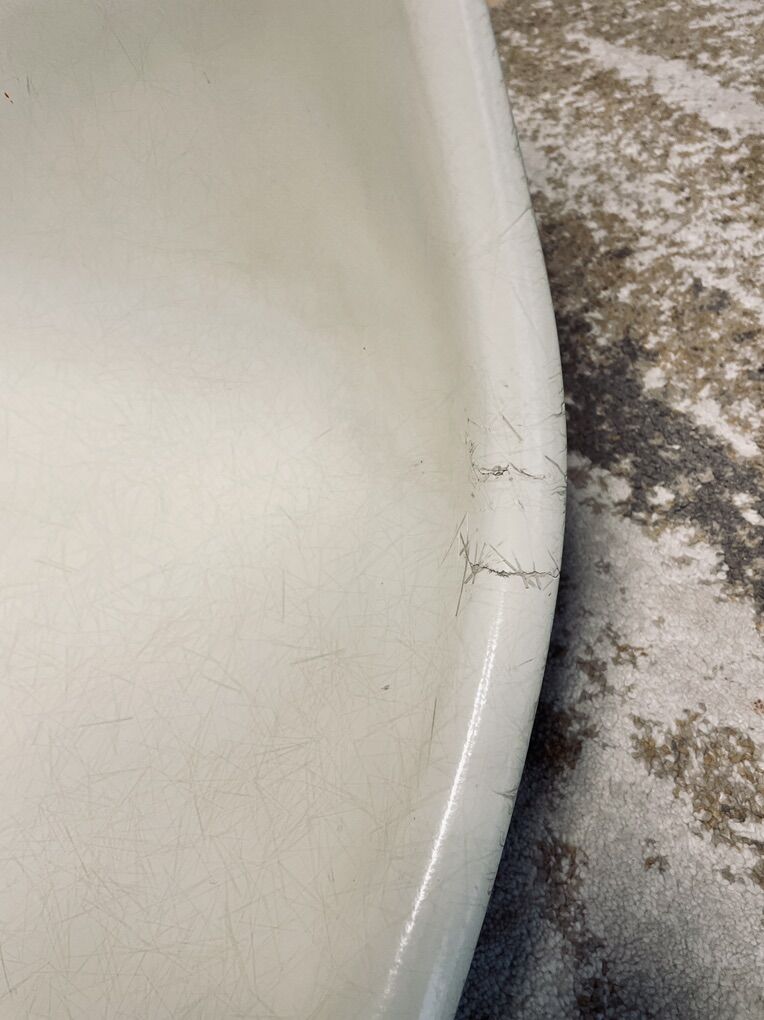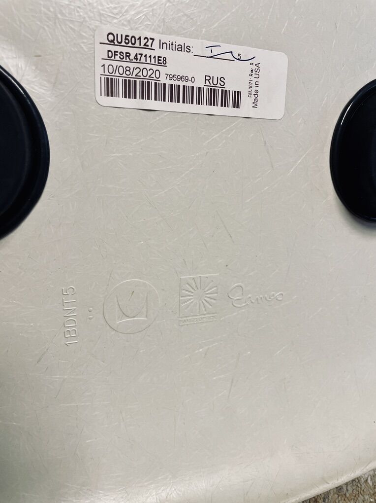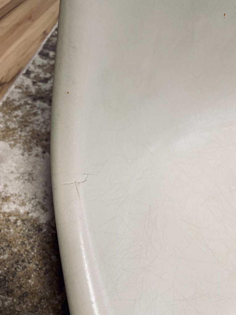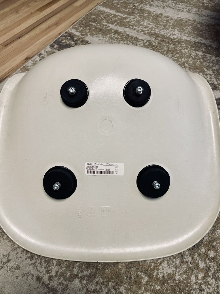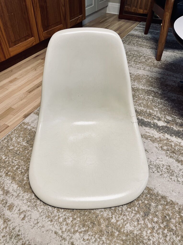 Selling an original authentic Eames Herman Miller fiberglass shell chair seat only, no base. It’s from 2020, no scratches but there is some damage in the sides, see pictures and there is no base…but it does not affect the integrity of the function of the chair. The shock mounts and screws are there just need a base.