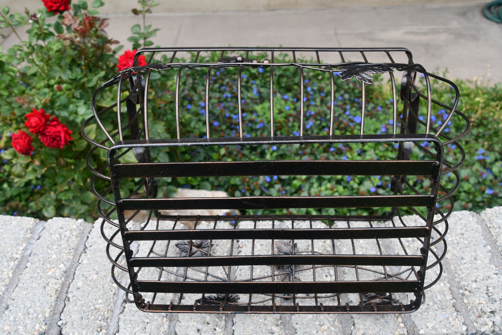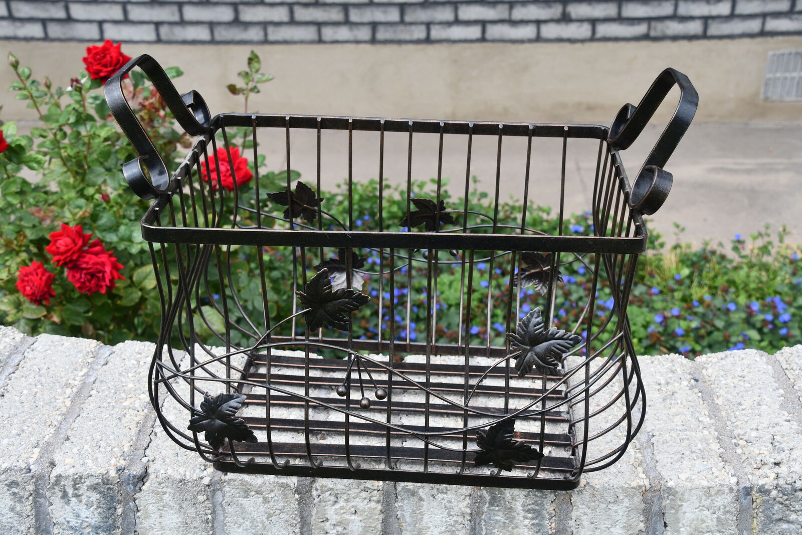 This HEAVY METAL BASKET is about 14" x 10". It has a LEAF DESIGN. Our home is smoke free. Questions??? Please ask. We are located in Plain City. Cash only please.