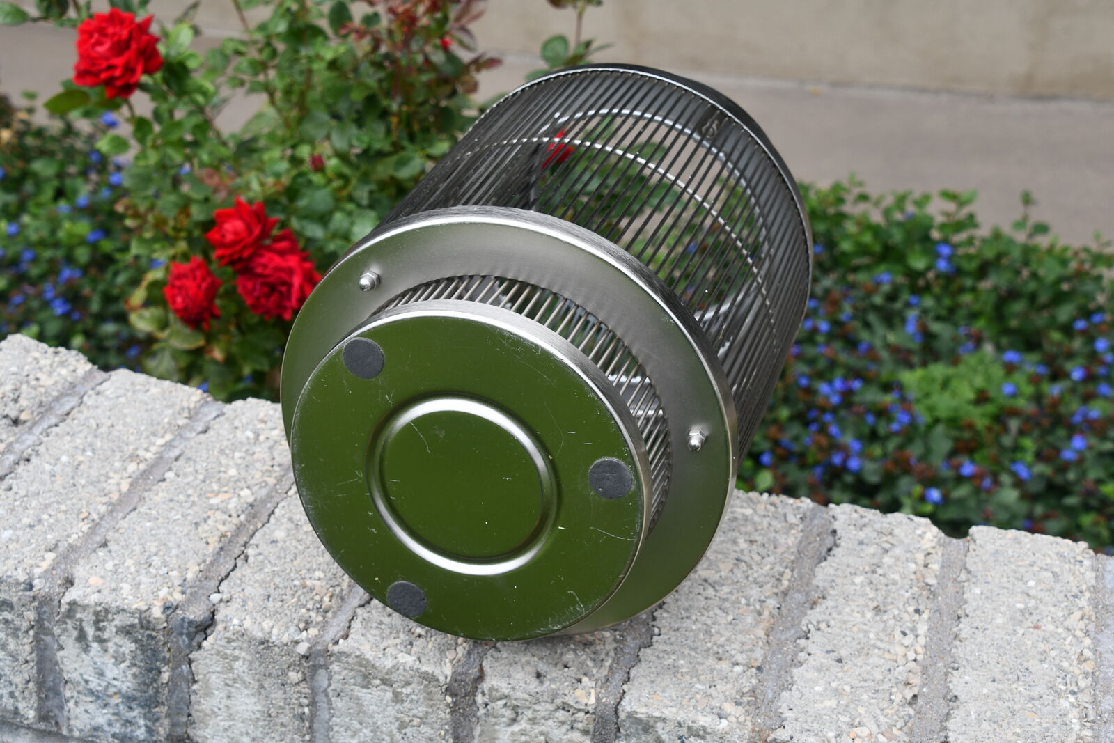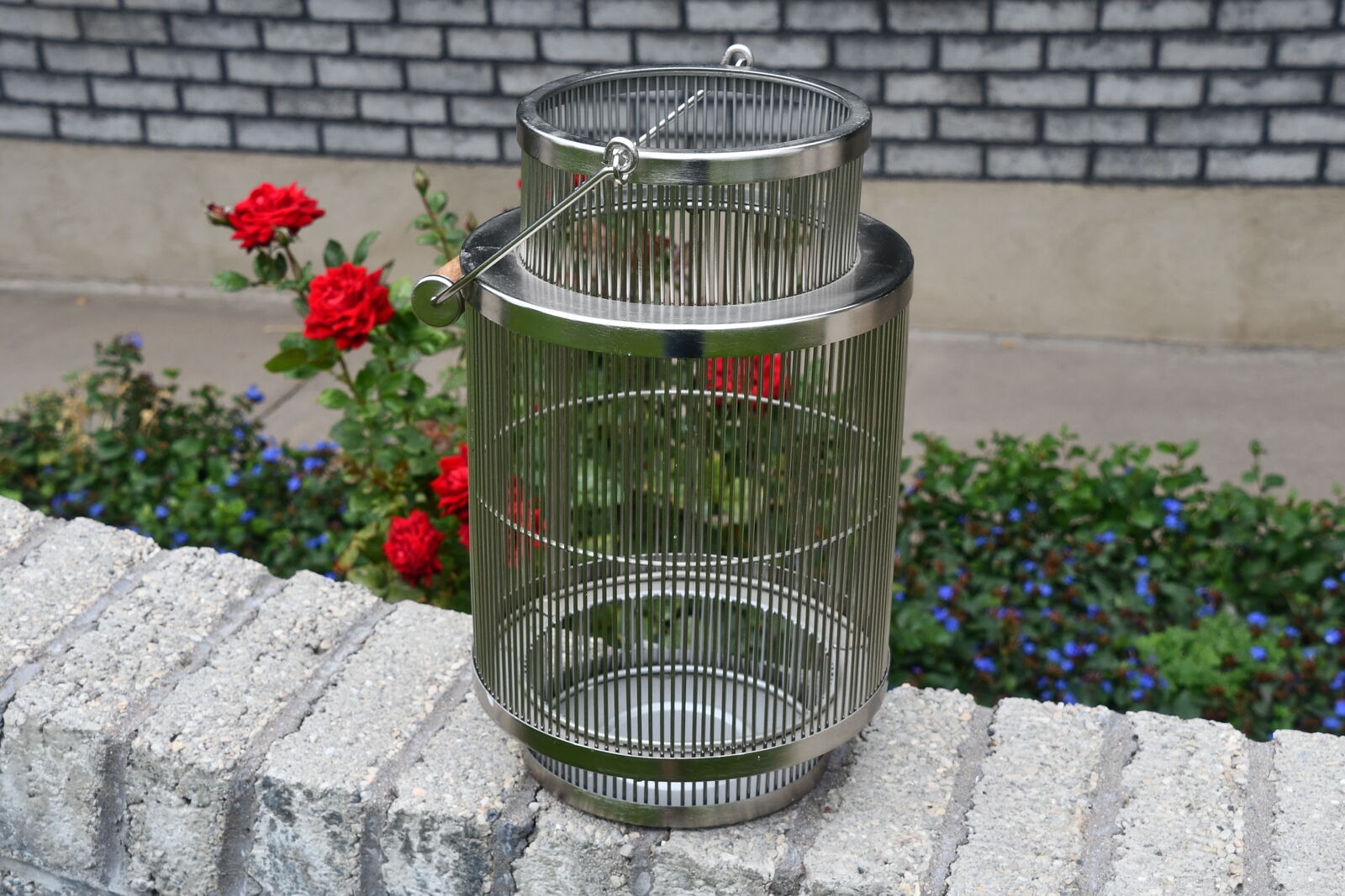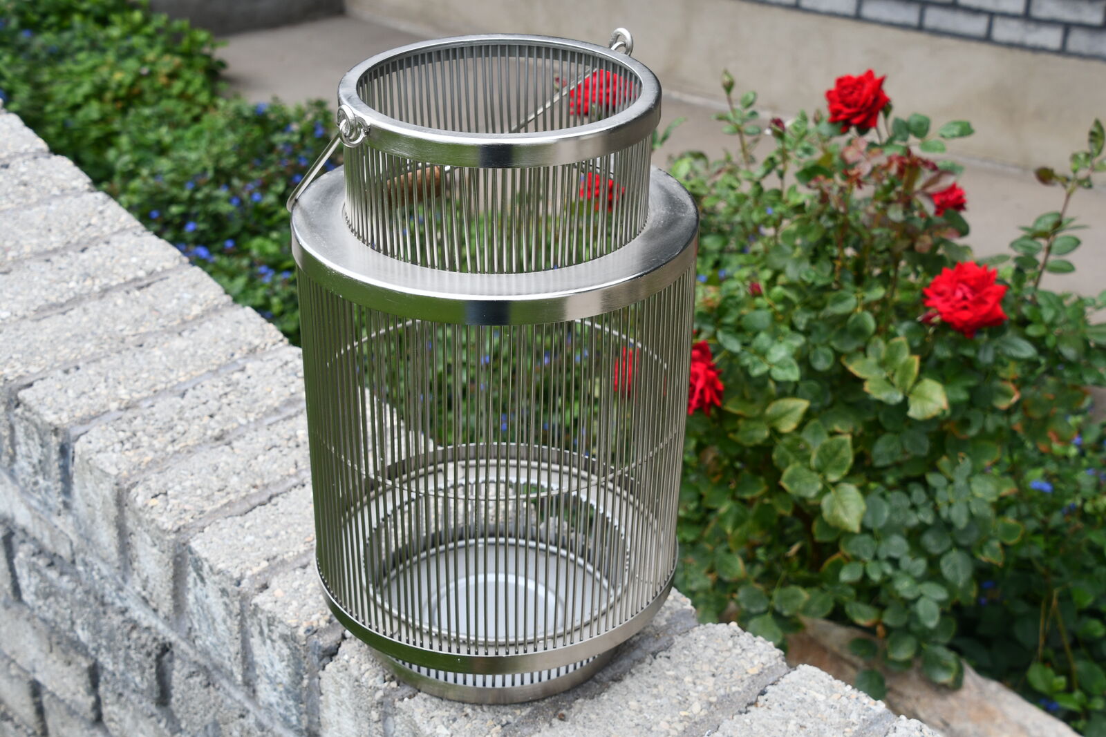 This HEAVY METAL SILVER LANTERN is about 14" in height. It has a HANDLE. It is CLEAN! Our home is smoke free. Questions??? Please ask. We are located in Plain City. Cash only please.