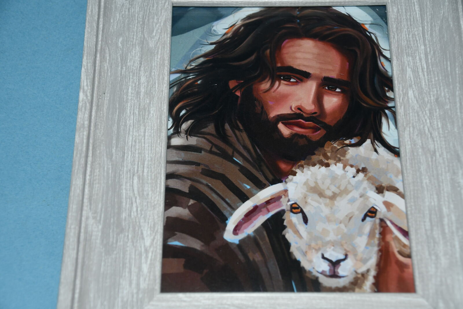 This "JESUS with LAMB" Picture is 8" x 10". It has an EASEL BACK. Our home is smoke free. Questions??? Please ask. We are located in Plain City. Cash only please.