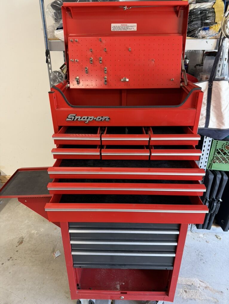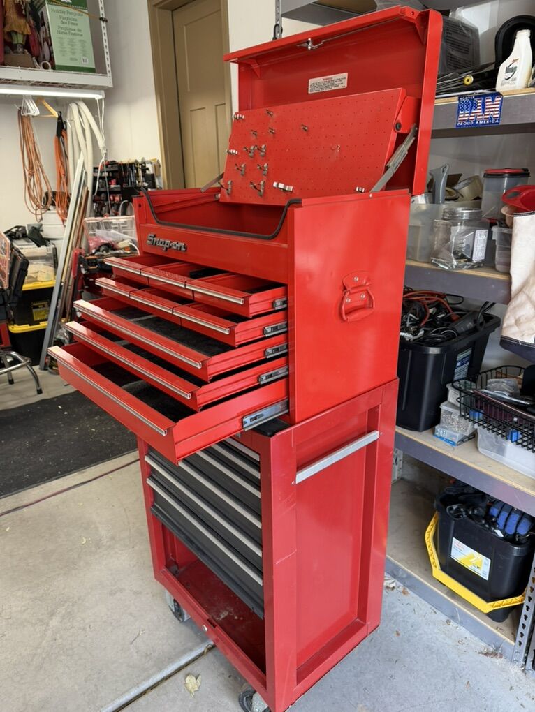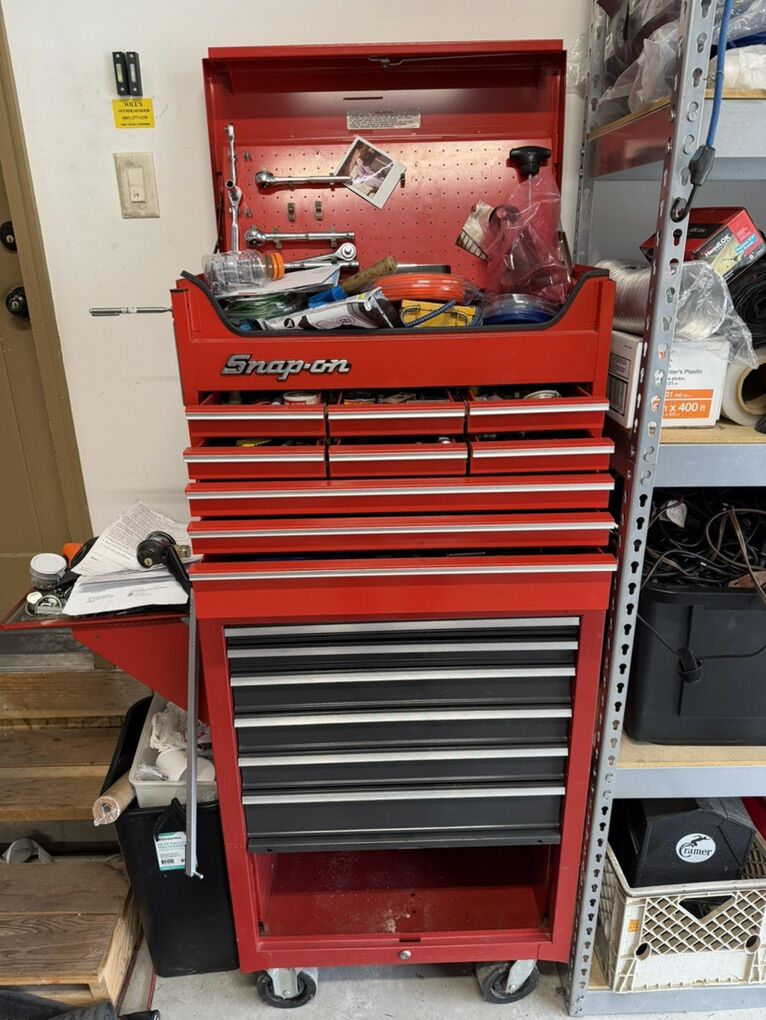 Snap On 26" Nine-Drawer Tool Chest (Red) with Craftsmen bottom chest. Great shape, no issues.