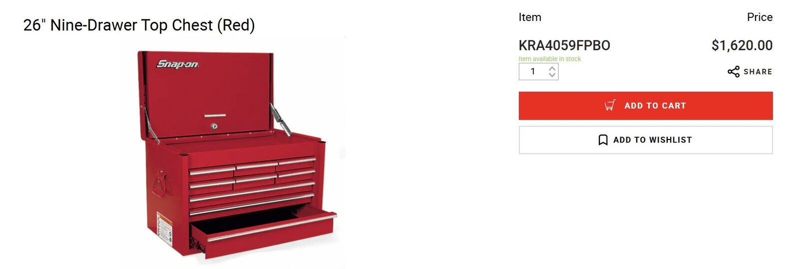 Snap On top goes for around $1,620 + shipping and tax.
