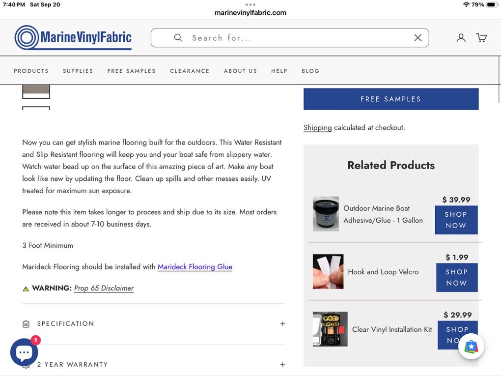 ApplePayNow you can get stylish marine flooring built for the outdoors. This Water Resistant and Slip Resistant flooring will keep you and your boat safe from slippery water. Watch water bead up on the surface of this amazing piece of art. Make any boat look like new by updating the Vinyl Clean up spills and other messes easily. UV treated for maximum sun exposure.