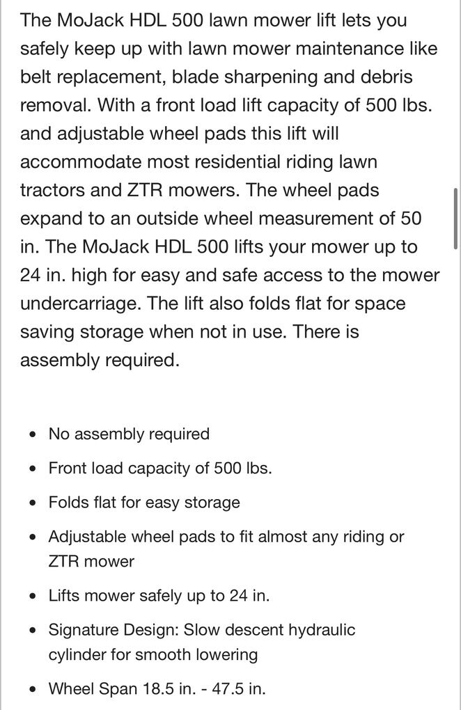 VenmoNew MoJack HDL 500 Lawn Mower Lift. More information on the pictures.