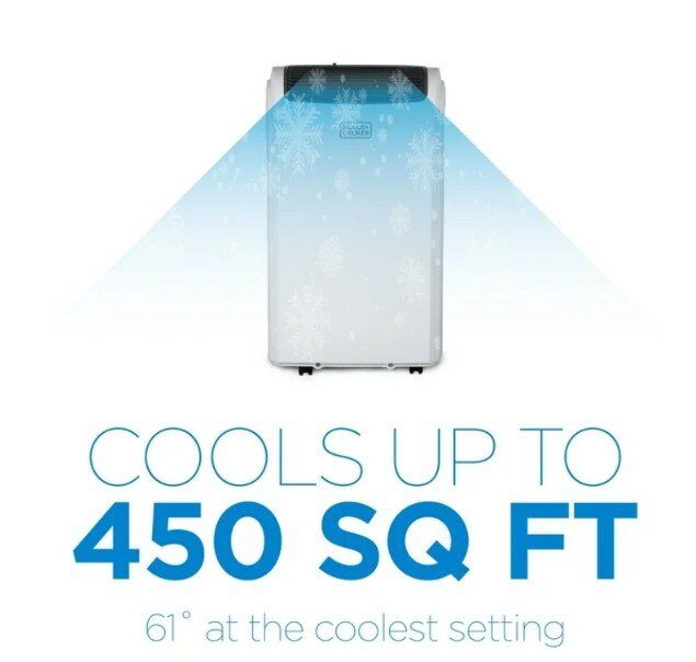 Portable AC: Use this personal air conditioner (16.5" x 11.7" x 27.9") in rooms up to 450 sq. ft. Stay cool in the hot summer months and sleep well with this BLACK+DECKER ac unit for bedroom.