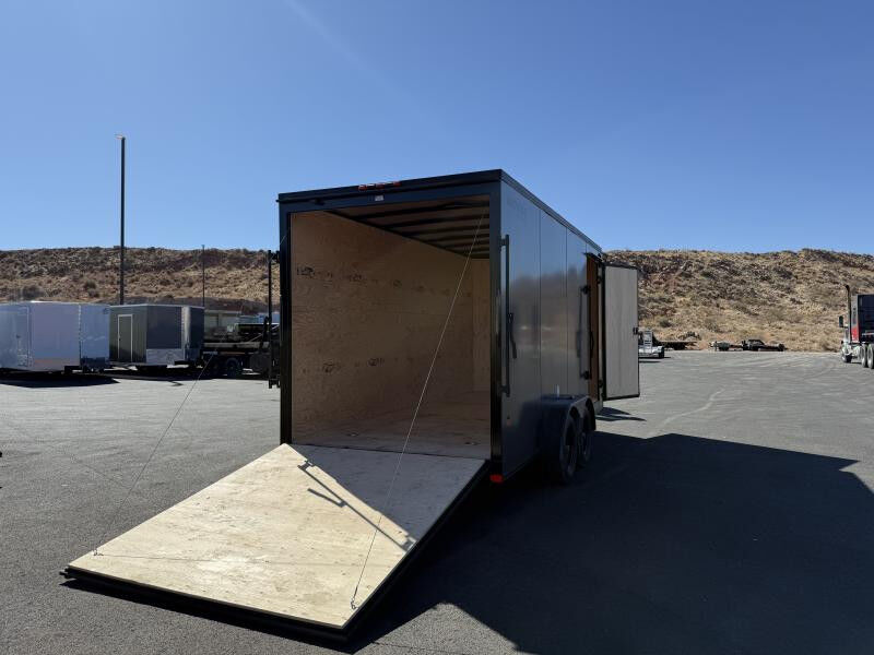 Standard Features: HSS Structural Tubing Steel Frame Side Man Door (28" wide x 77" tall) 3/8 Plywood Interior Walls 3/4" Plywood Floor Enclosed Wiring Interior Lights w/ Wall Switch Automotive Style Undercoating 24" Diamond Plate Rock Guard Electric Breakaway Kit Side Cross Flow Vents Aluminum Diamond Plate Fenders Common Addons: Wall Mounted Spare Tire 10 ft. E-Track Stick Recessed 2,500# D-Ring Additional Colors Available Call for Availability WASATCH TRAILER SALES - LARGEST TRAILER SELECTION IN UTAH Hurricane: (435) 239-8920 | 6477 W Foothills Canyon Dr. Hurricane, UT 84737 View More Inventory: www.wasatchtrailer.com Over 2,000 trailers in stock at Wasatch Trailer Sales! With three convenient Utah locations - Layton, Springville, and Hurricane - finding the perfect trailer has never been easier. We offer one of the largest inventories around, backed by quality you can trust, superior value, and unparalleled pricing. Don't see exactly what you need? Call or text 435-239-8920 with 20+ top manufacturers and easy financing, we'll get you on the road fast! Whatever you haul, we've got the right trailer - in stock year-round!