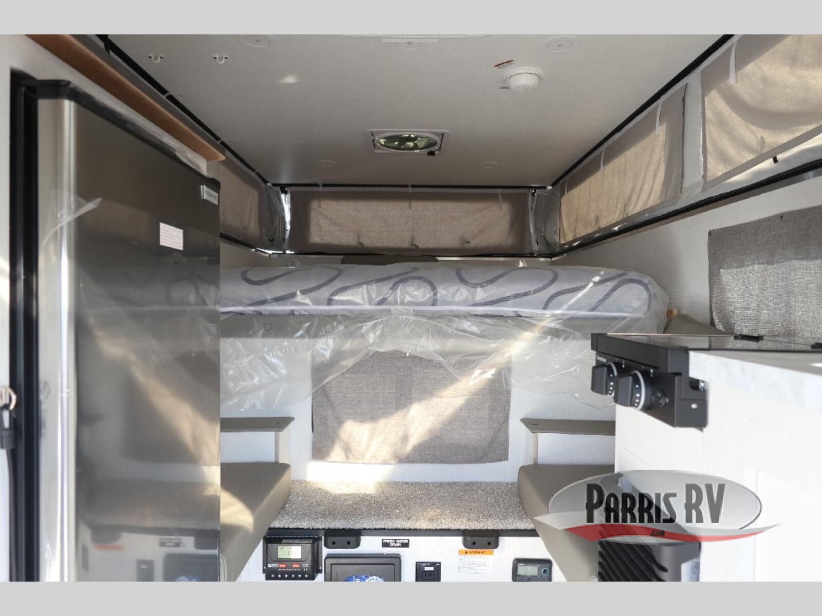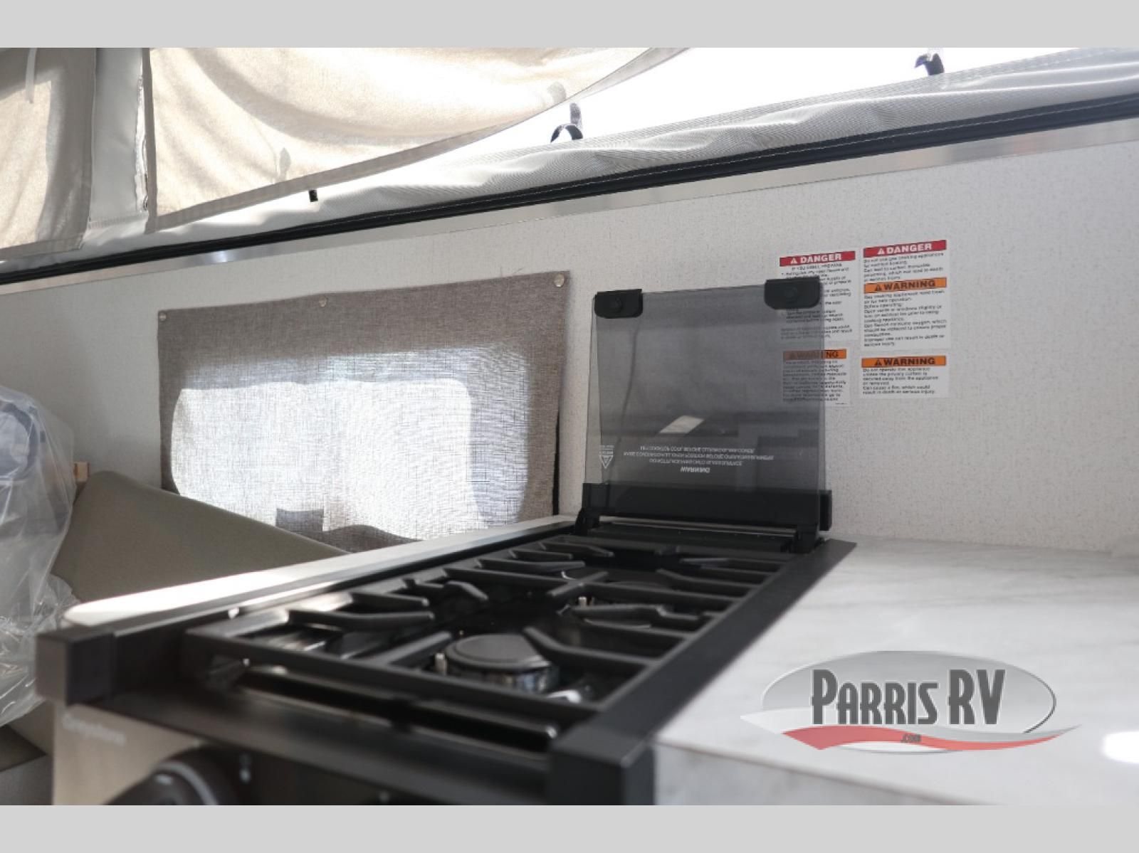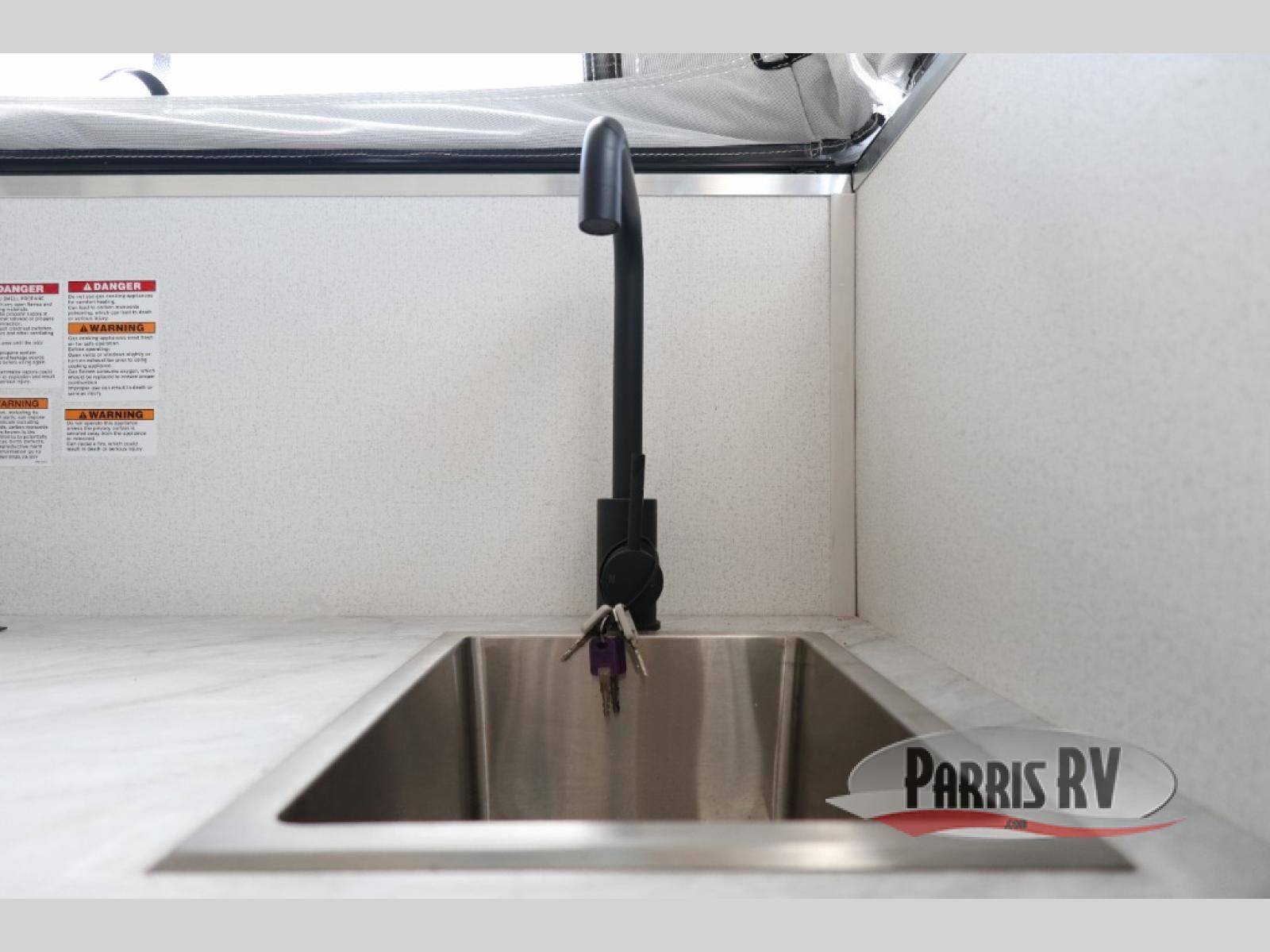 If you're in need of a soft side truck camper designed for a compact truck then look no further! The front queen bed helps you get a good night's rest so you can be ready for your early morning fishing trips. You can also fry the catch of the day on the two burner cooktop and enjoy it at the U-shaped seating area with a table. If there happens to be any leftovers then you can store them in the refrigerator, and the storage area next to the refrigerator helps to keep your items out of the way.