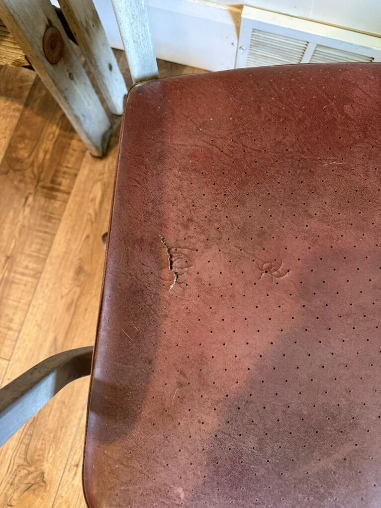 VenmoAmazing Cole steel office chair, solid aluminum frame with incredible vintage aero legs . Vinyl is in ok condition but does have some damage shown in pictures .