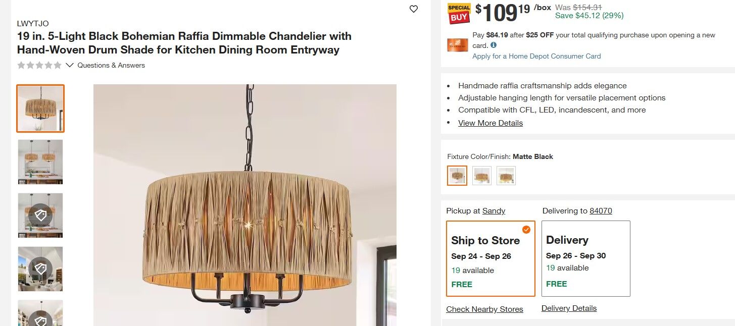 $154.31 on HomeDepot.com (Currently on sale for $109.19)