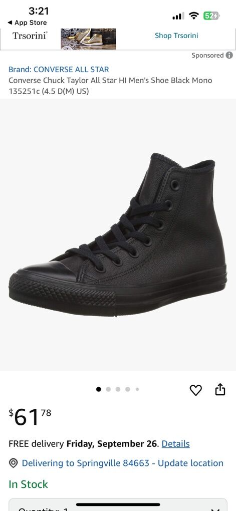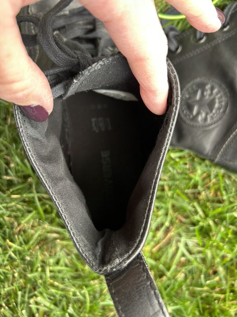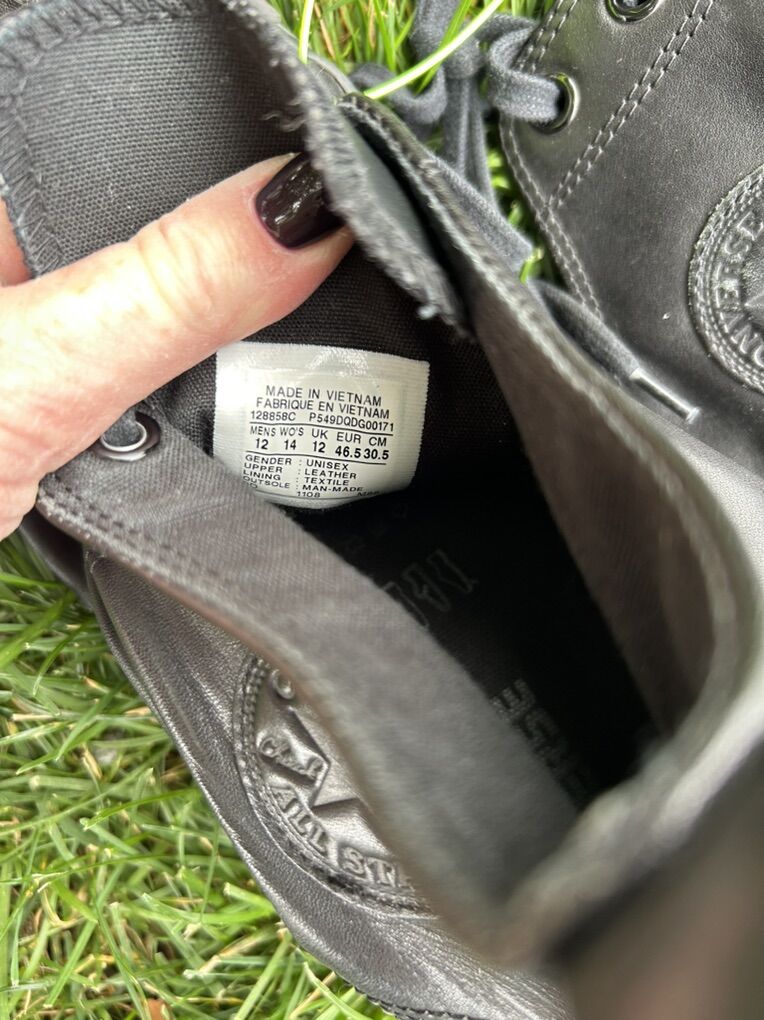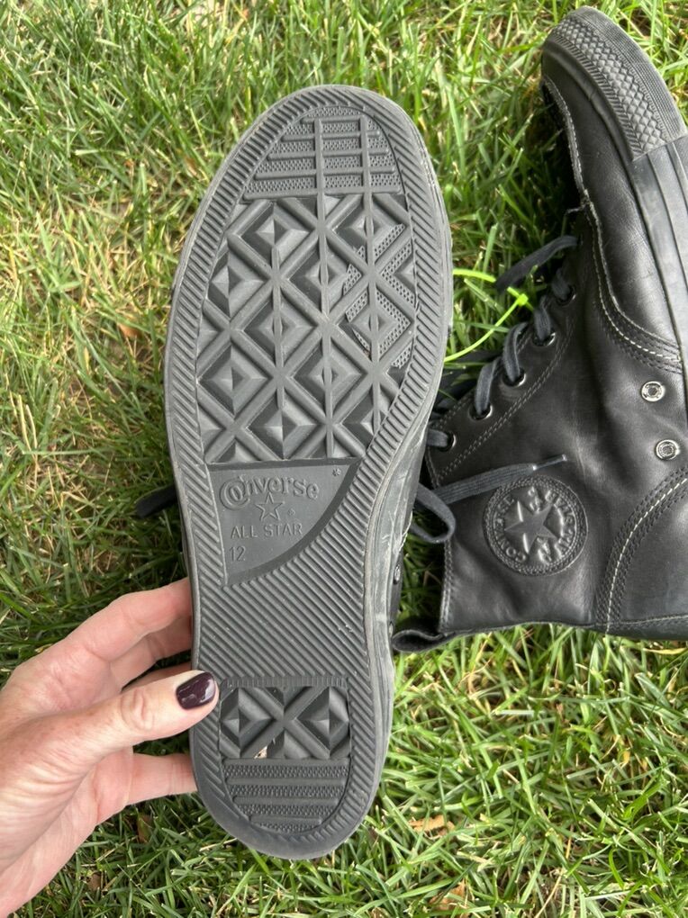 VenmoIn excellent condition black leather Chuck Taylor All Star shoes in men’s size 12. Clean smoke free. Cash or Venmo. Pick up from Alpine UT.