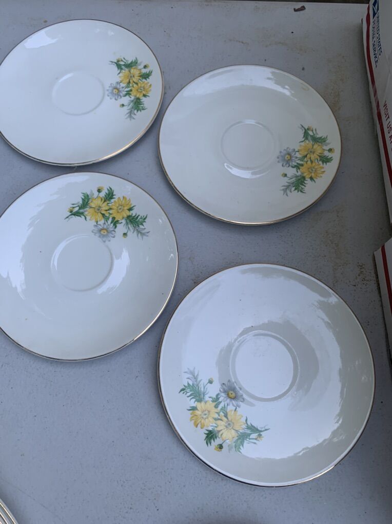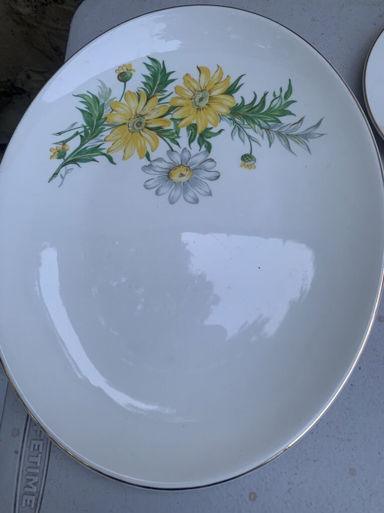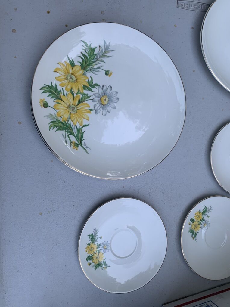 PayPalVintage KNOWLES 52-7 White and Yellow daisy pattern Plates Platter Saucers 9 Set