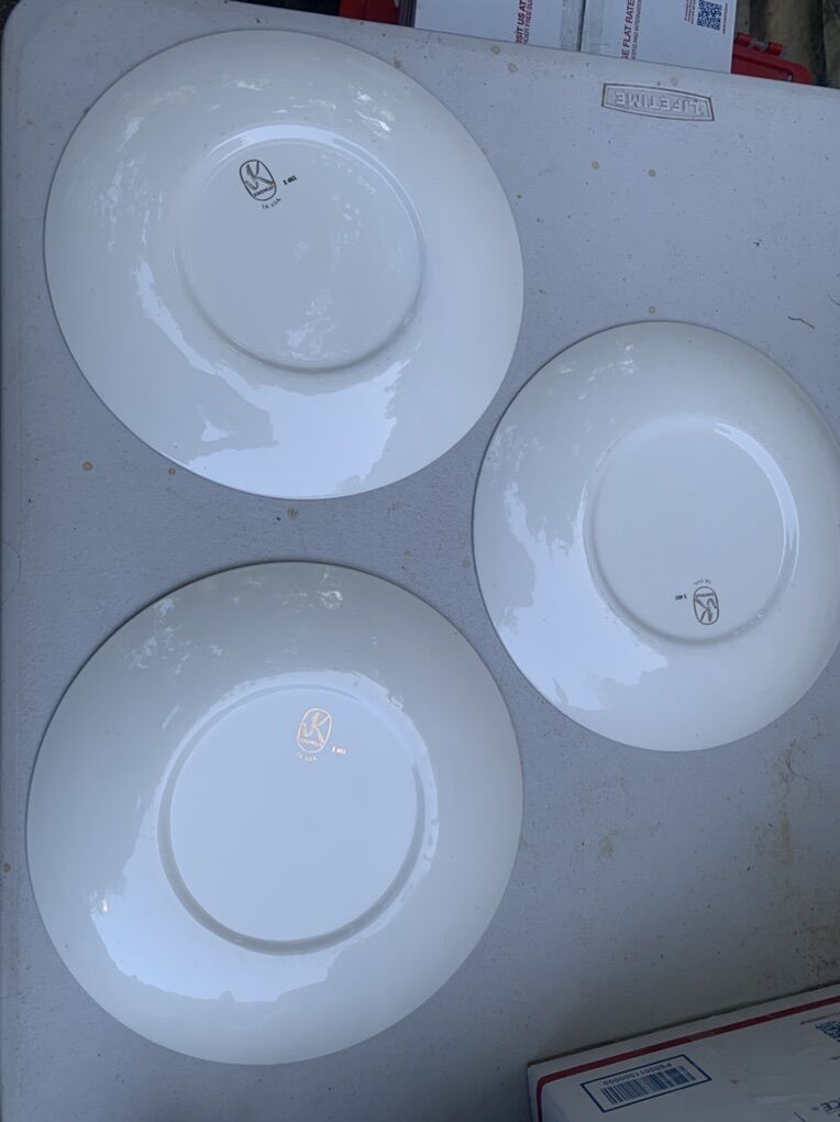 Two plates have some flea bites or chips on the back.