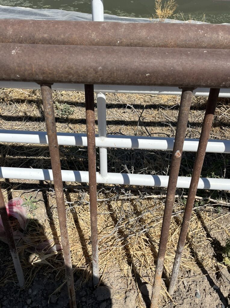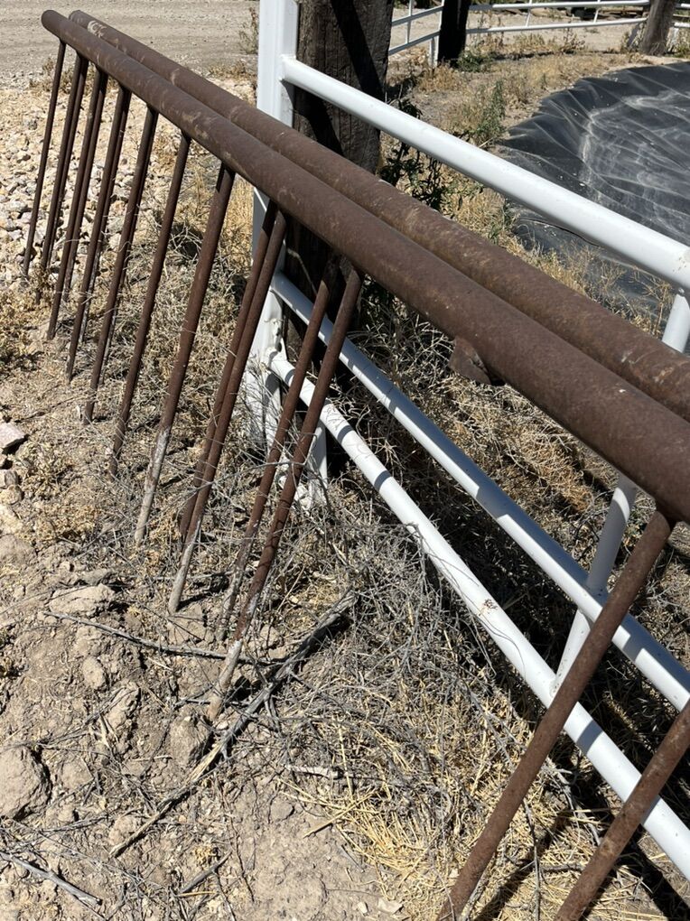 Drill pipe and sucker rod manger feed racks Two 30’ sections Just a drill pipe top rail and the sucker rod, no bottom rail We cut these out to put in self locking mangers $150 each