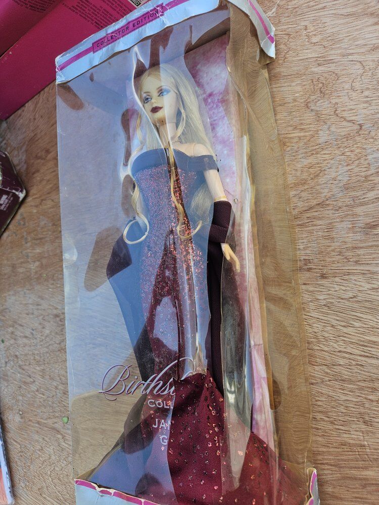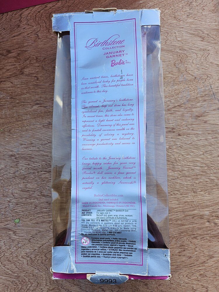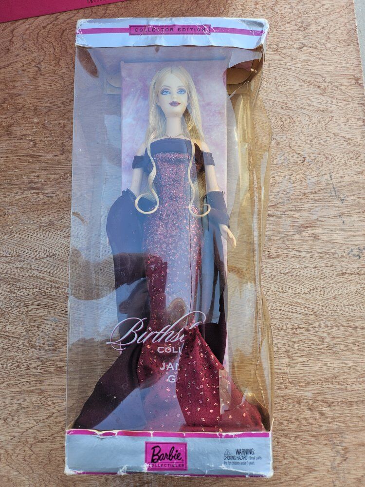 VenmoThis is the 2002 January Garnet birthstone collection barbie, she is blonde. She is in her original box however the box has some issues. she has never been taken out. She is beautiful and would make a great collection peice.
