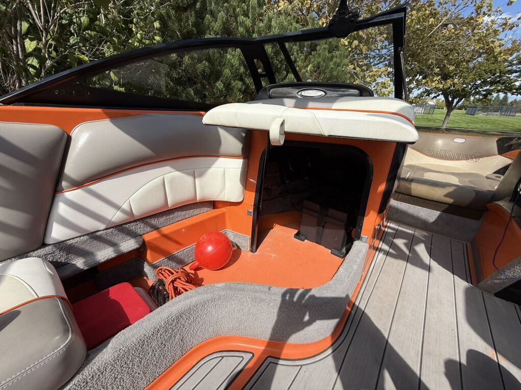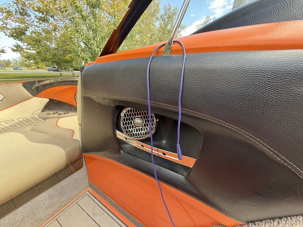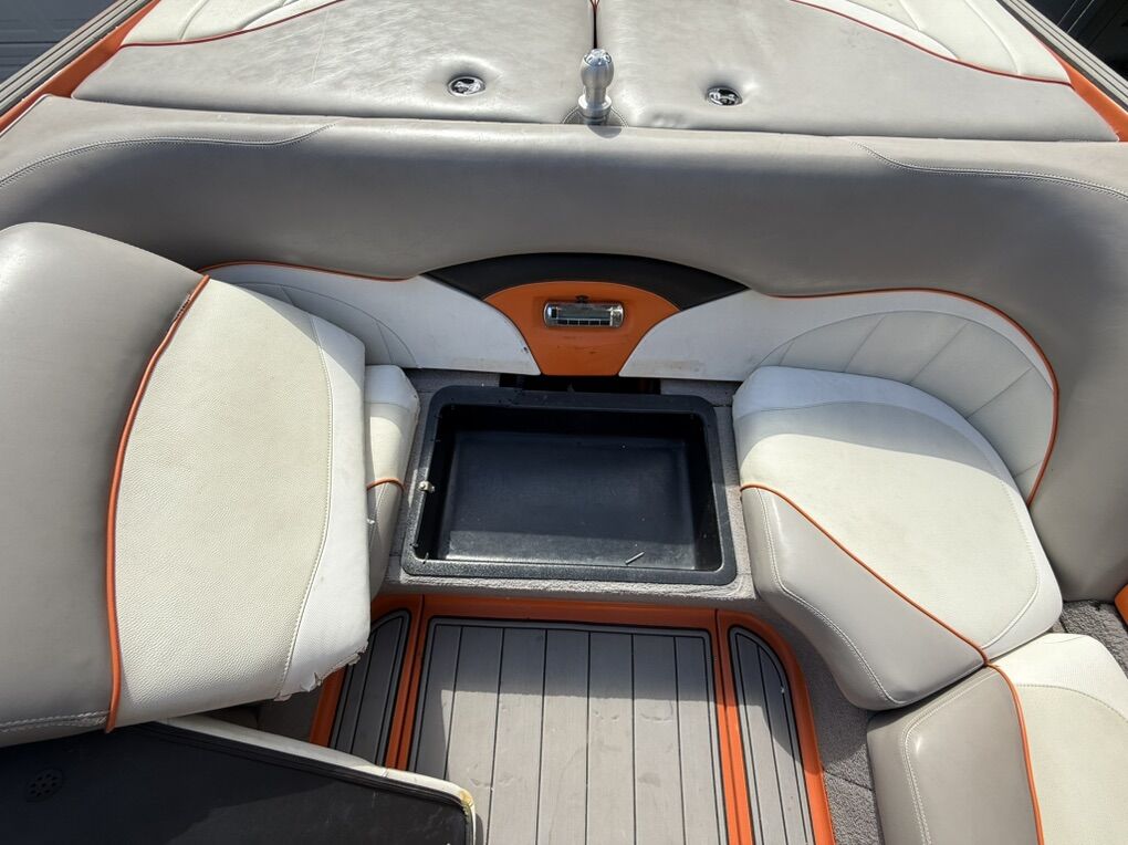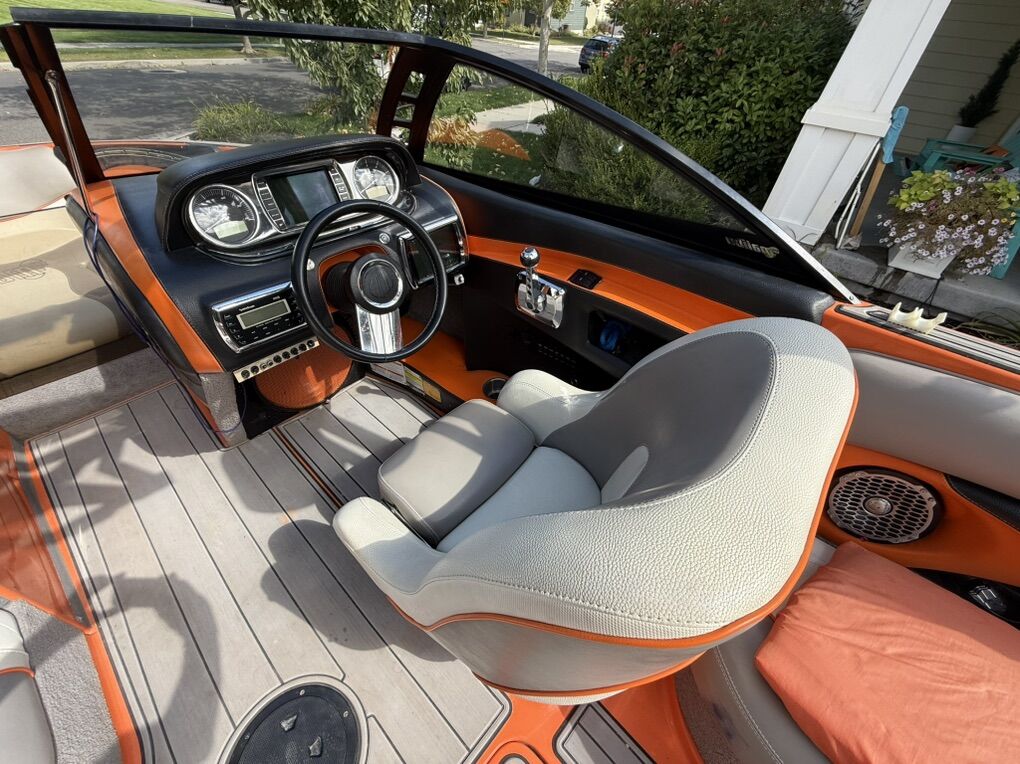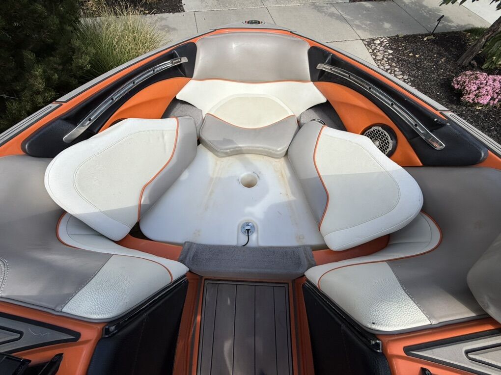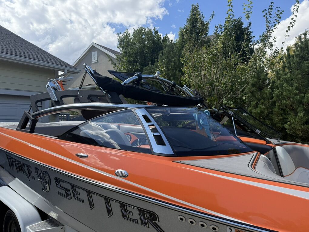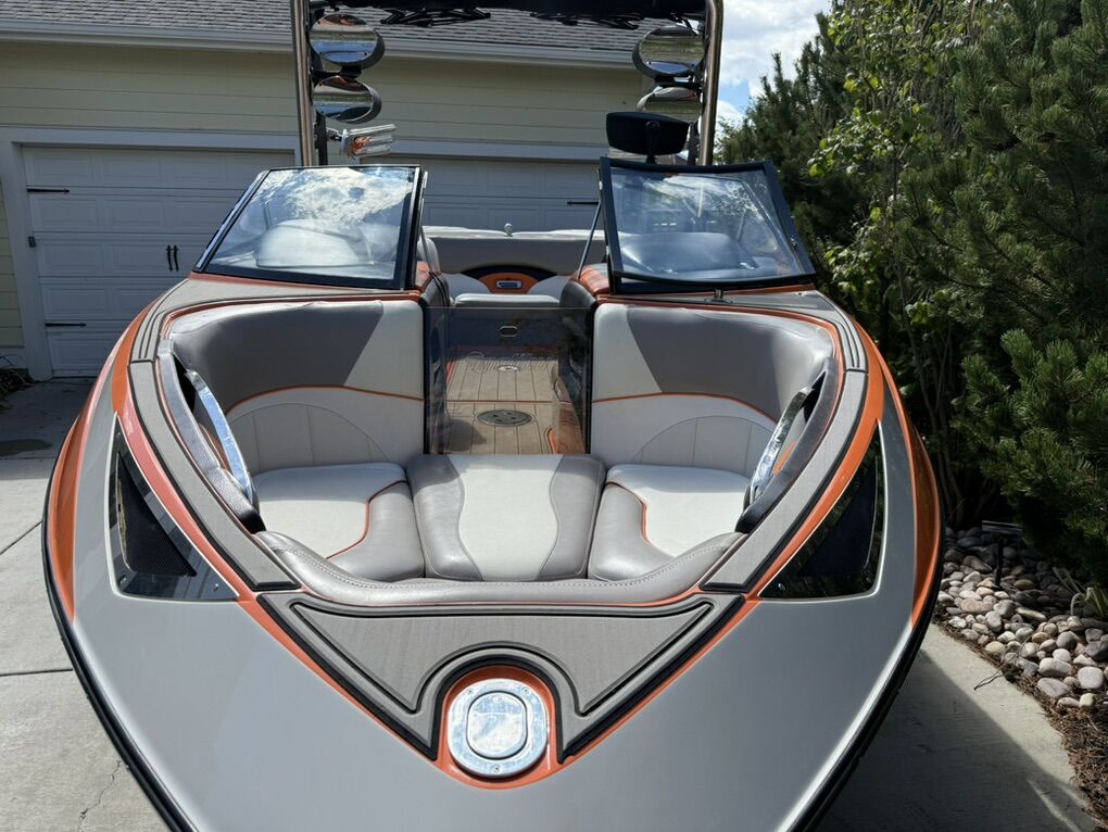 Features & Upgrades: •Evolution tabs were installed for a great wake set up •Power Wedge for adjustable wake shaping •Ballast system for surfing and wakeboarding, hard tanks in front, middle and rear. Fat sacks in rear •Premium stereo system with tower speakers & subwoofer •Touch screen dash controls •Bimini top & full travel boat cover •Tower with swivel board racks & lights •Tower is collapsible for storage •Spacious wrap-around seating with storage •2 extra storage racks for surfing boards •Netted storage racks for drying life jackets •Full lighting system for evening surfing
