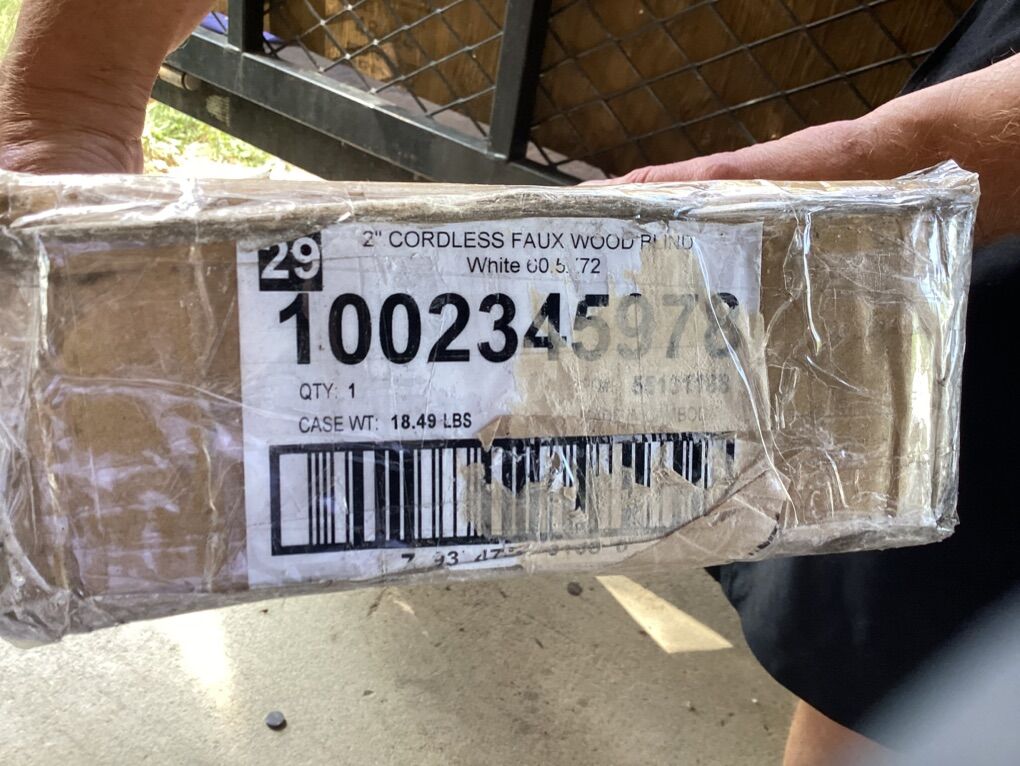 Cordless design – safe, modern, and easy to use Faux wood – durable, moisture resistant, and easy to clean 2-inch slats – great for privacy and light control Size: 60.5” wide x 72” long Color: White Weight: ~18.5 lbs