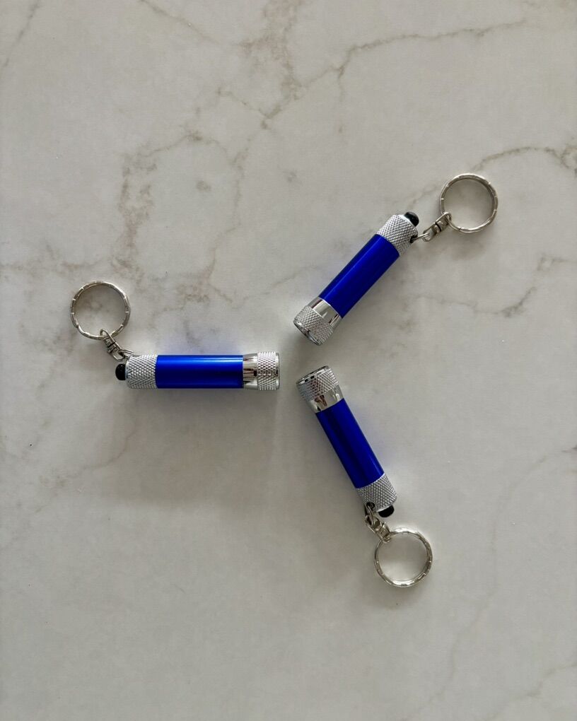 • The blue flashlights take 3 LR44 batteries each; the gunmetal flashlight takes batteries that are LR754 (not included)