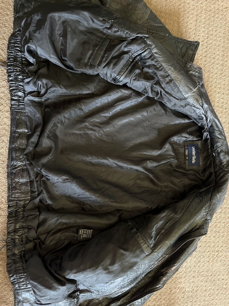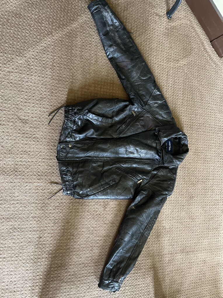 Nice old motorcycle riding Heavy leather jacket in good condition, just needs the main zipper replaced. All the other zippers and snaps work great. Leather is very soft, no tears or rips anywhere and yes those are real nickles(old)not fake. Size is medium. $150.00 ...Cash Only…No Checks… No Venmo