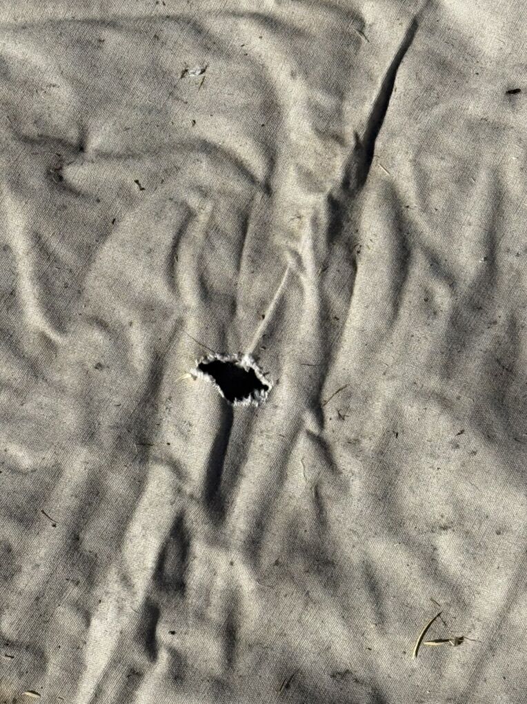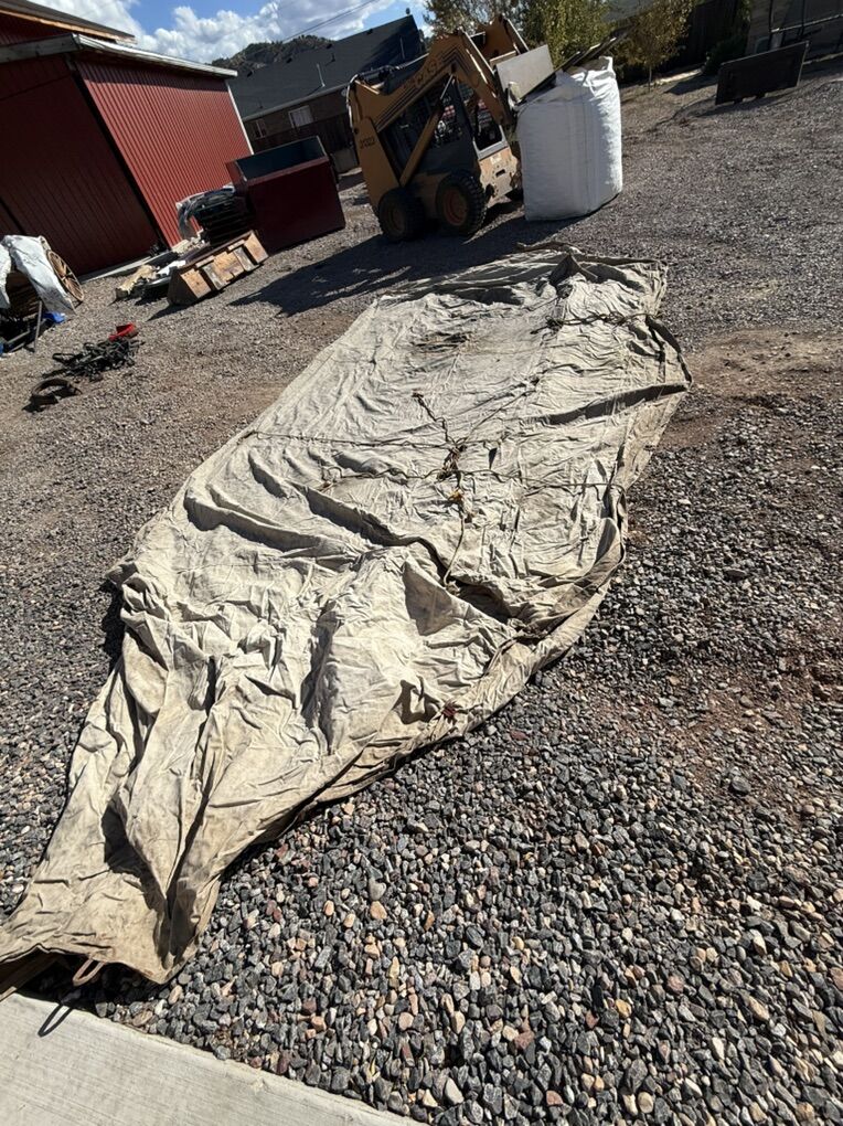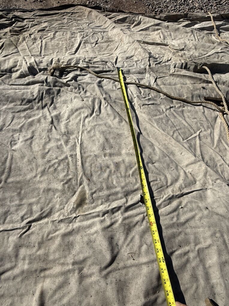 VenmoNice 8x16 wall tent with a single door, stove opening, tie down ropes, no ridge pole openings, 40” sides. It has one small hole in the roof about 29” up from the top of the wall.