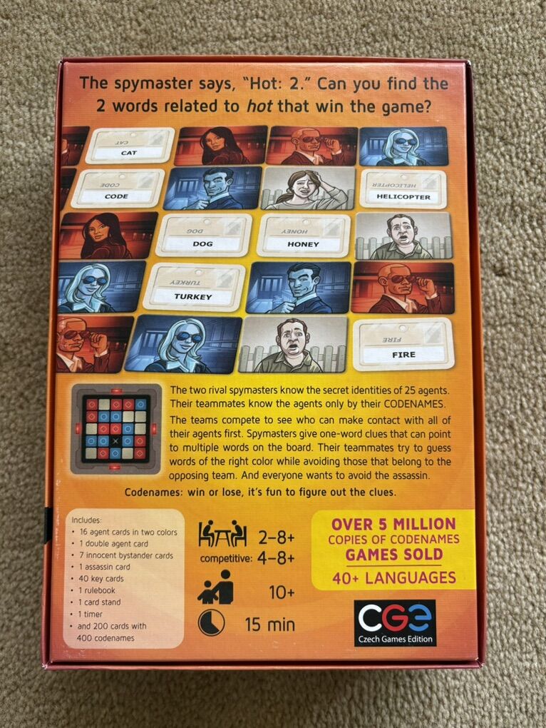 COMPLETE Codenames. Top Secret Word Game. Czech Games Edition. Original Codenames game by Vlaada Chvatil. 2-8+ players, ages 10+. Complete, no missing pieces. Excellent condition. Text only. Cash or Venmo.