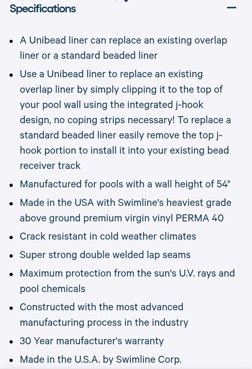 Swimline's unibead liners are made to last. These liners are made of extra heavy duty virgin vinyl, with super strong welded seams to last long winters and hot summers. Swimline uses computerized cutting tables and a computer aided design to make their liners, eliminating the risk of human error. Whether it's design, pattern or fit, these quality liners are unbeatable.