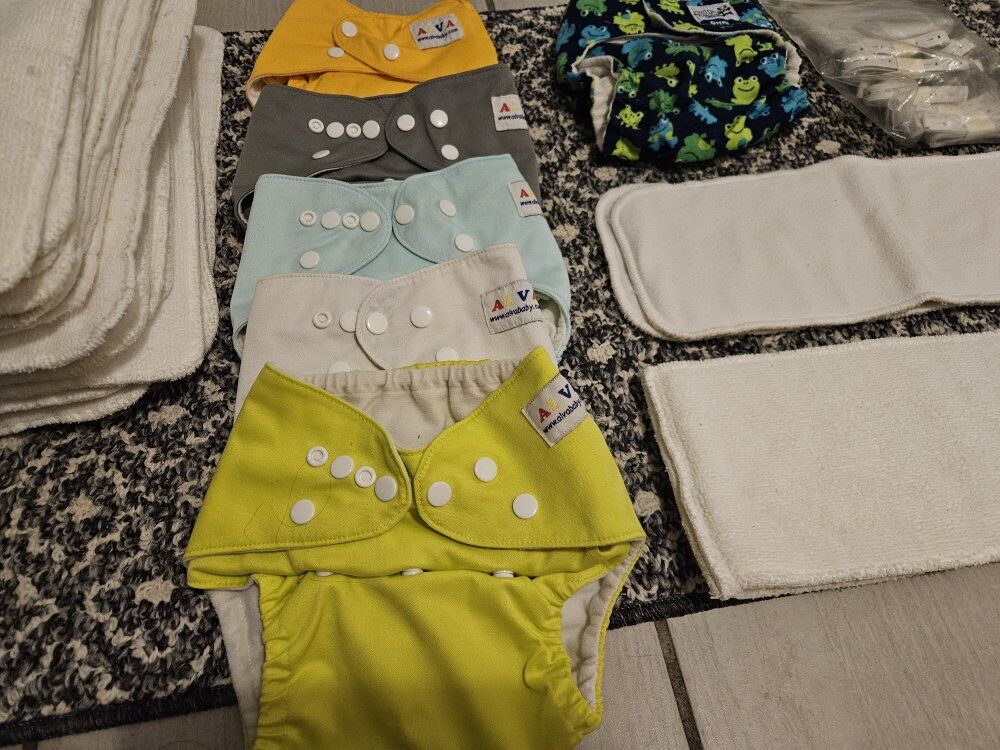 5 Alva Baby Shells 1 Frog Omni Soft Bums Shells 1 Knickernappies SuperDo Large 2 Large Inserts 31 inserts 24 Soft Bums Inserts