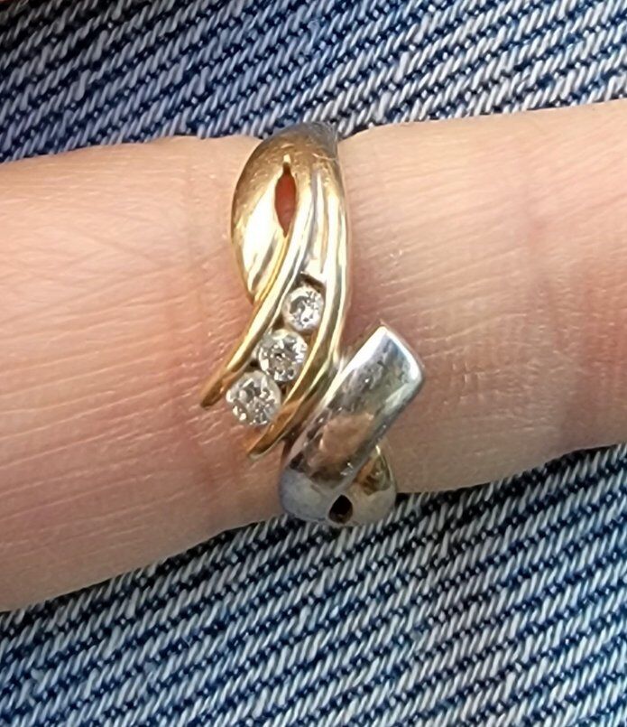 VenmoThis vintage women's ring is made of yellow and white gold. It features 3 small fully cut diamonds. It looks to be a size 7 and weighs 2.98 grams. Located in Sandy. Call or text Doug 801-403-0543