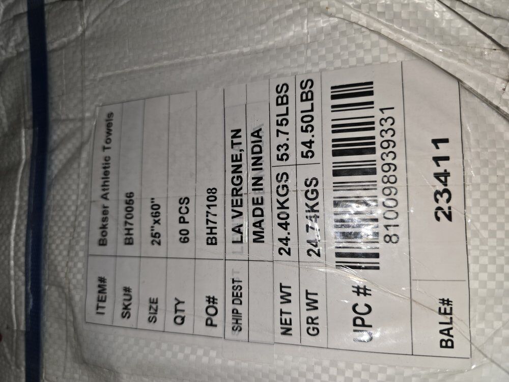 Bokser Cotton Athletic Towel Bale of 60pcs Athletic Towel 25" X 60" MFG# BH70056