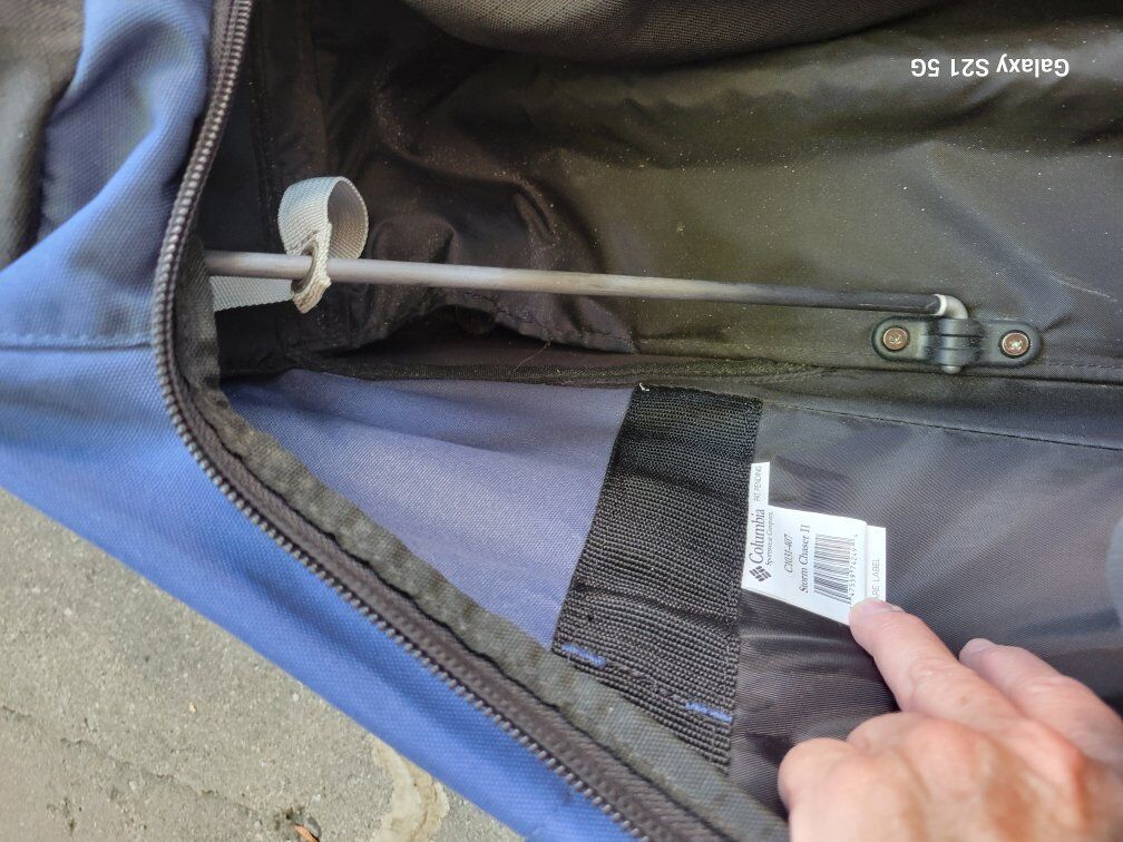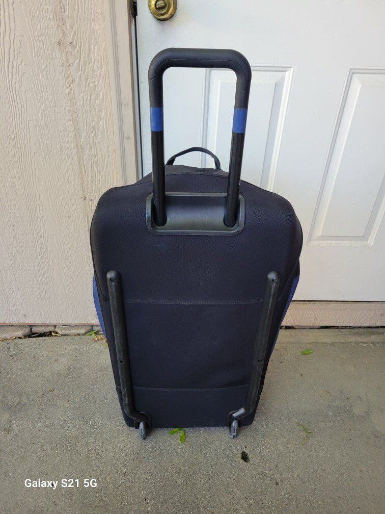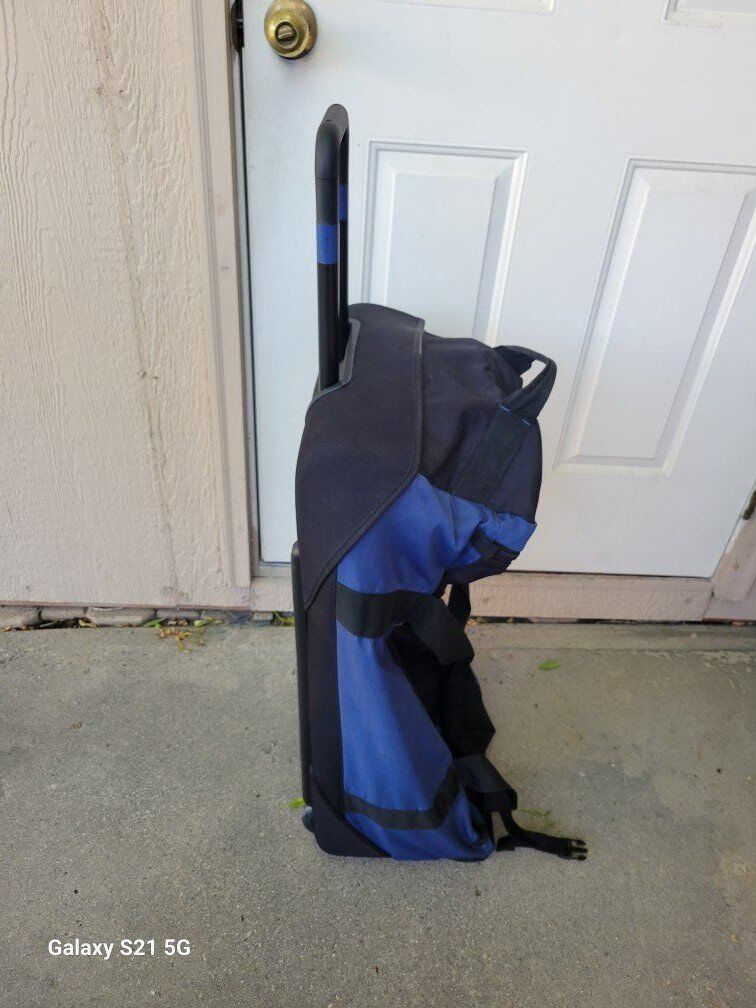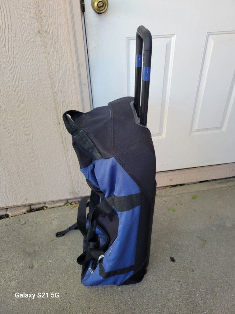 Columbia Storm Chaser 2 roller duffle bag with internal frame and handle with back wheels. good condition. Measures about 31"X16"X10" (my measurements). I have included the style and UPC should you want to see more specs.