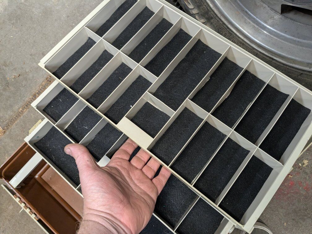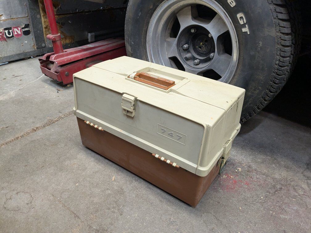 Excellent condition oversized tackle box that holds a ton of tackle. Drawers can either slide out or top door opens accordion style. These sell for around 150 bucks on eBay.