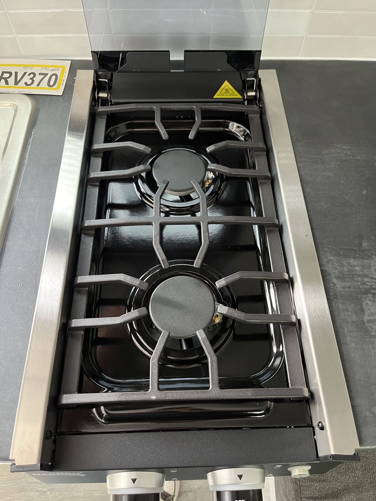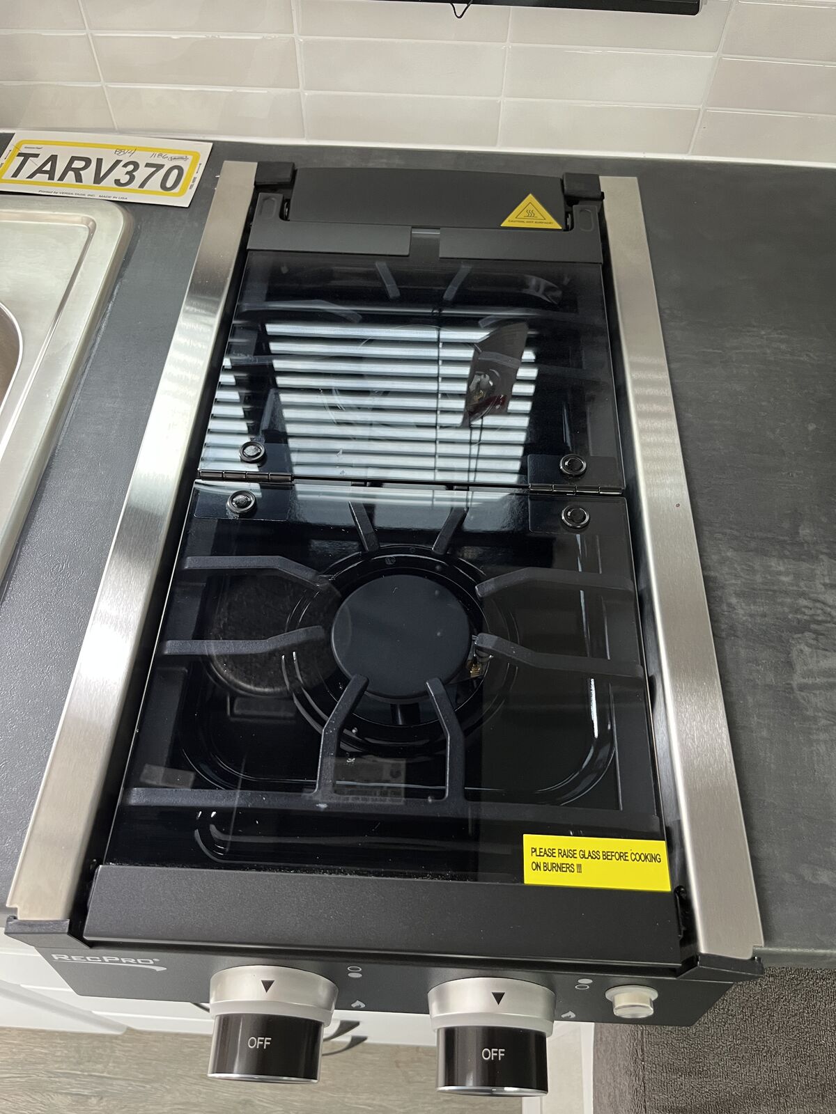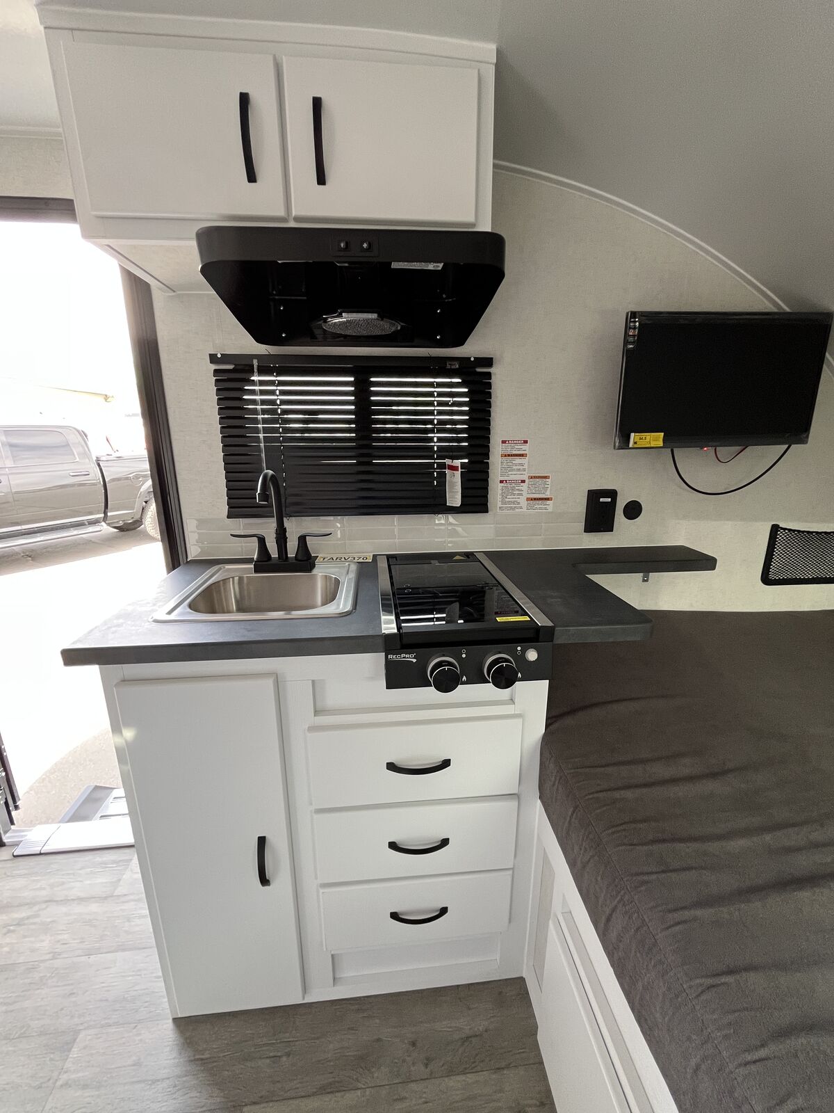 Fully Equipped Rear GalleyStainless steel sink and dual-burner cooktop for meal prep 12V refrigerator/freezer to keep food and drinks fresh Expanded countertop space for cooking and storage Slide-out design under the rear hatch