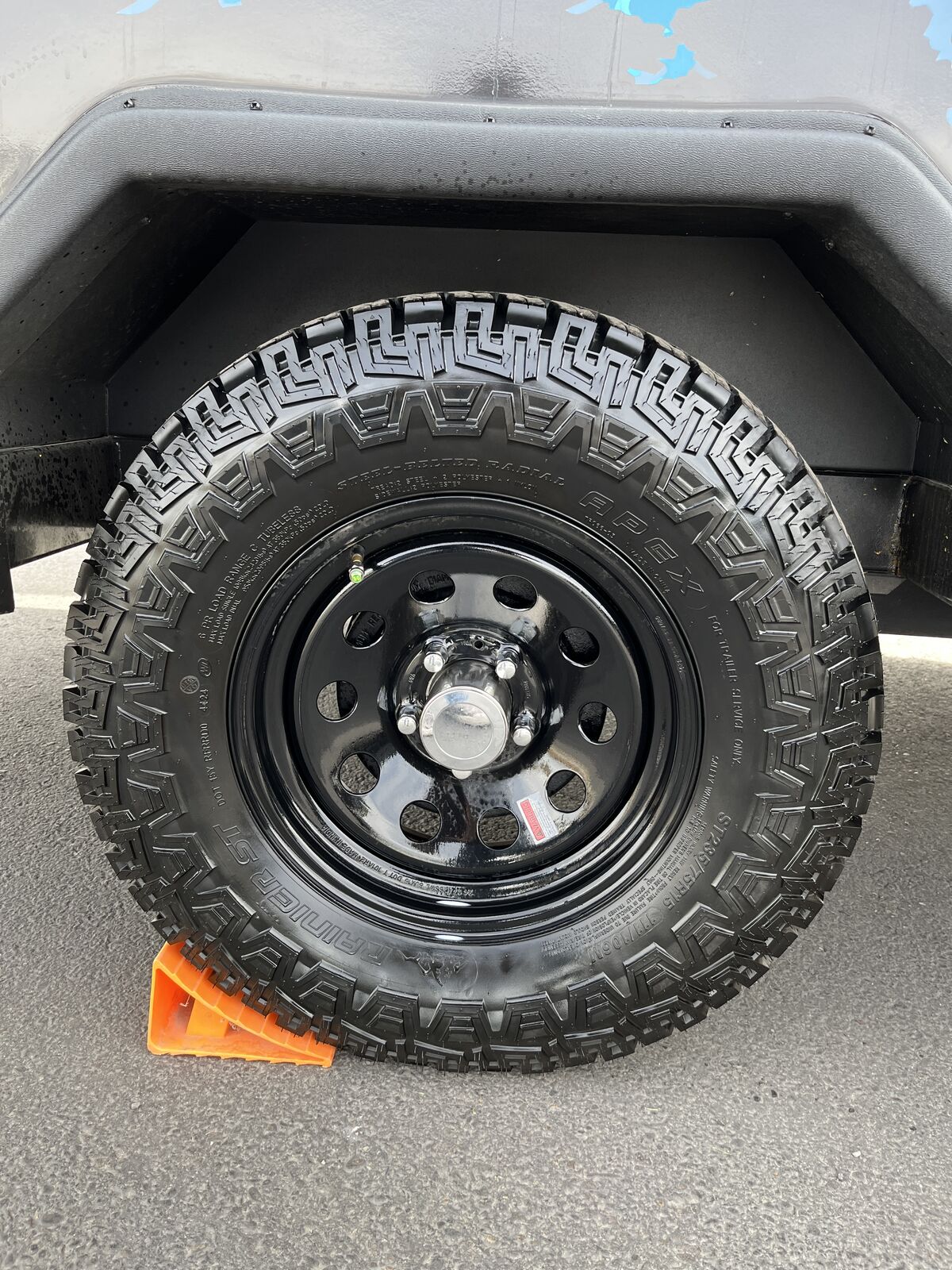 Adventure-Ready BuildAll-aluminum welded frame with rugged composite exterior Heavy-duty off-road tires, pitched axle, and high-clearance suspension Diamond plate accents and aggressive fenders for protection on rough terrain Roof rack and aluminum utility platform for kayaks, bikes, and gear