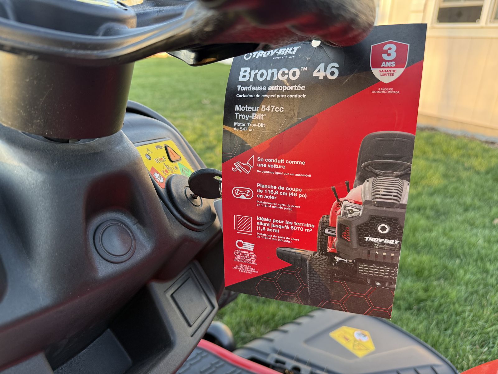 VenmoBrand new Troy Bilt Bronco 46" Riding Lawn Mower. Retails for $2,300 on the Troy Bilt website. There are a couple of small scratches from shipping. See photos.