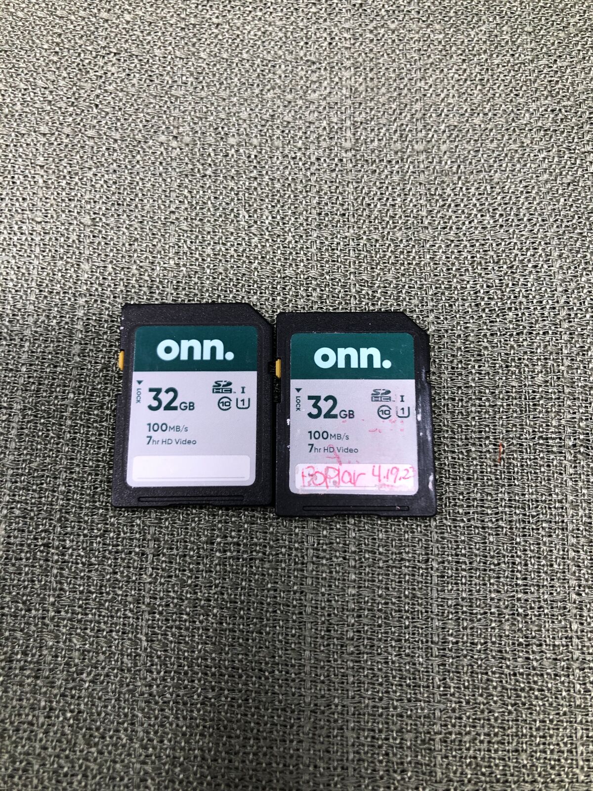 VenmoSelling a set of three 32GB SD cards: 2 Onn. 32GB SDHC Class 10, 100 MB/s 1 SanDisk Ultra 32GB SDHC Class 10, 120 MB/s All are lightly used, but completely cleared, tested, and working. Great for cameras, video recorders, or extra storage. $25 for all 3, similar brand new cards are selling for $31 plus tax! Measurements: W 1 x L 1 1/4 x H 1/16 (1 SD Card)