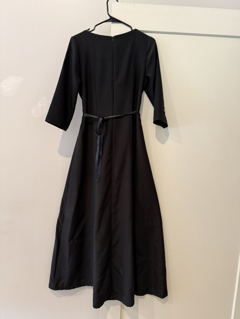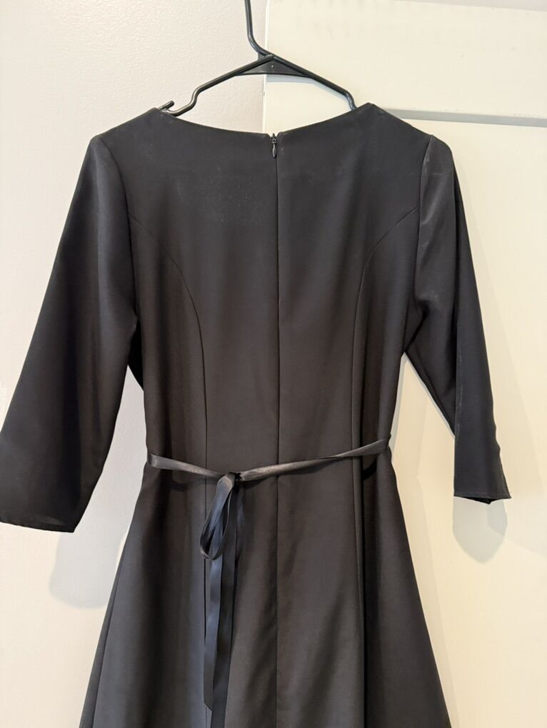 VenmoBlack Formal Dress with Black ribbon tie. Women's Size 8 Dress zips in the back. Comes with an extra ribbon tie in white. Would be easy to customize and add your own embellishments to personalize. Could be used for many occasions: dances, musical performances, church, etc. Clean and no stains